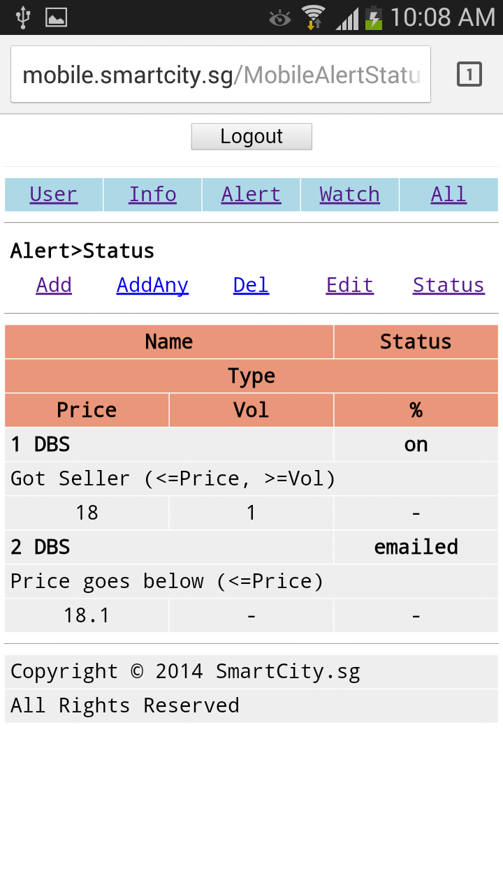 2.比如你想在DBS成交价<=S$18.1,得到提醒