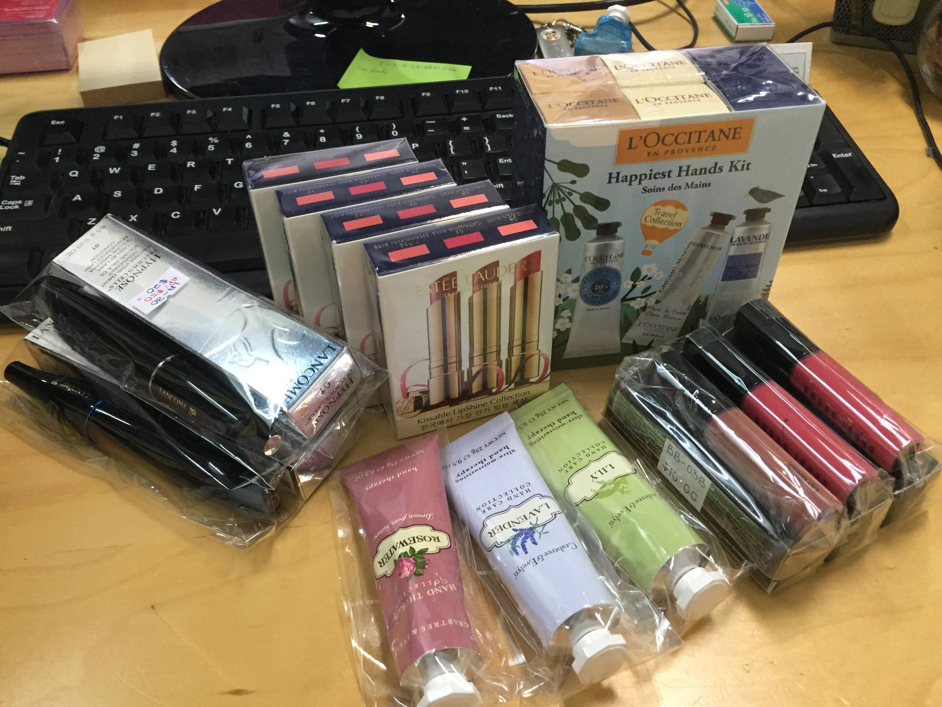 兰蔻睫毛膏20,EL口红一盒三只10块,不过sales说半年过期,朋友居然还让我帮带了4盒也是醉了...欧舒丹手霜一盒六只50块,螃蟹树手霜8块一只,BB唇彩10块一只