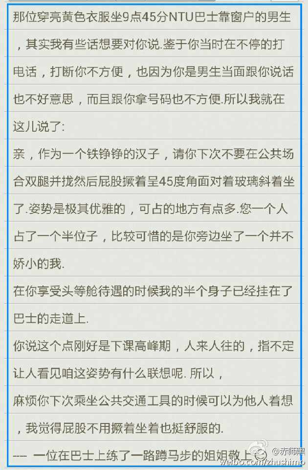 功夫熊猫 • • 61888 次浏览NTU 的那位男生请注意!