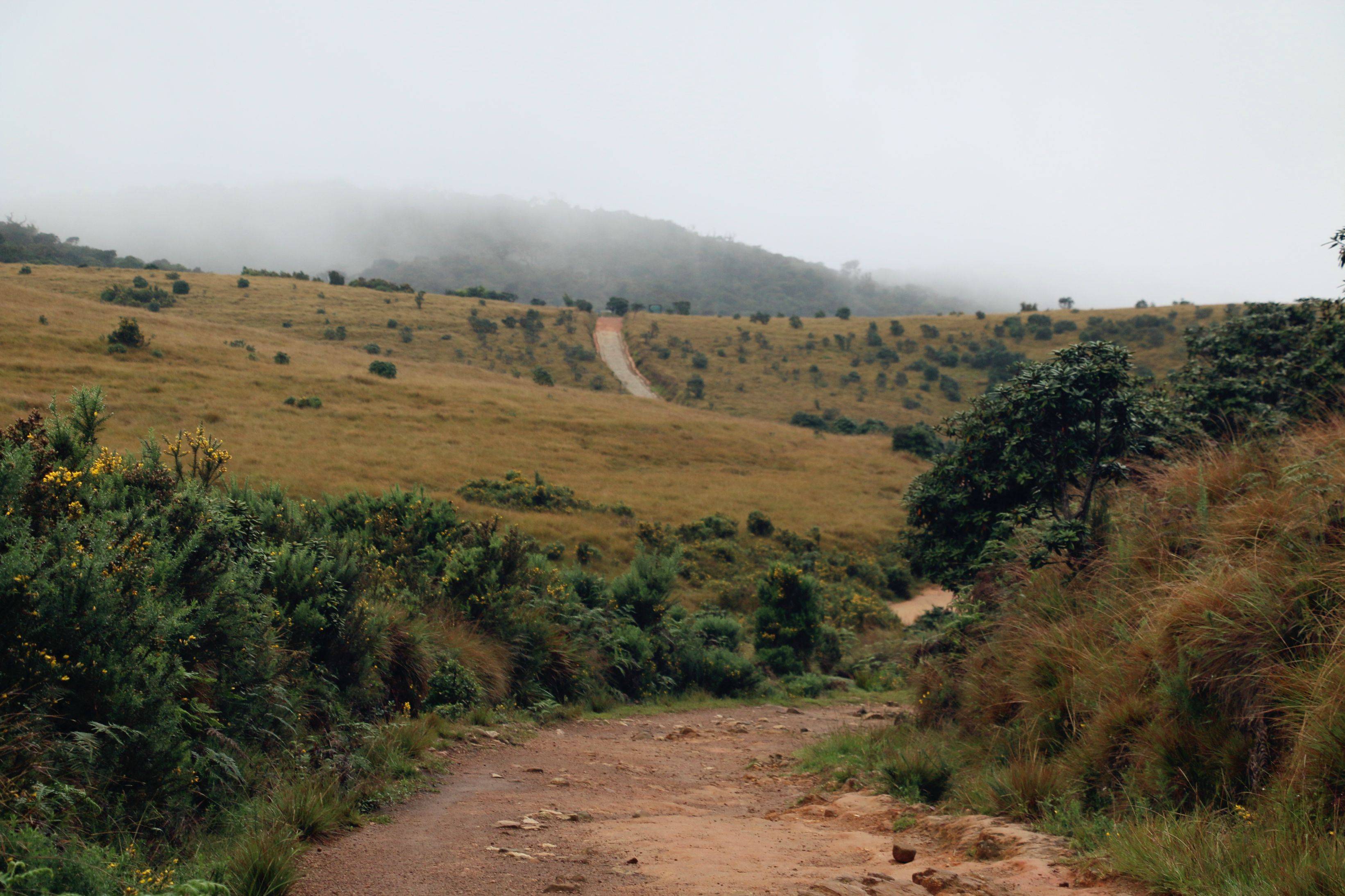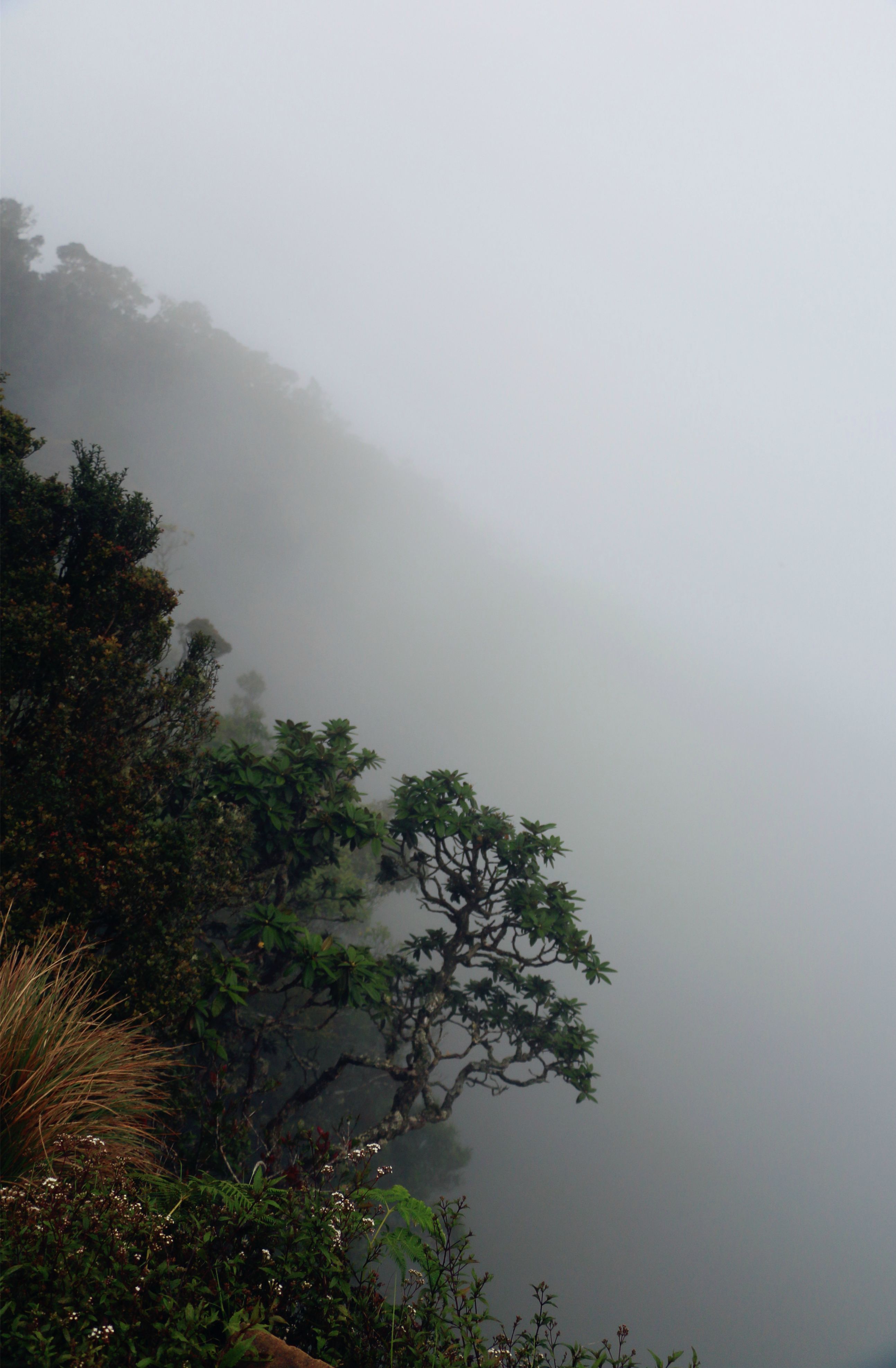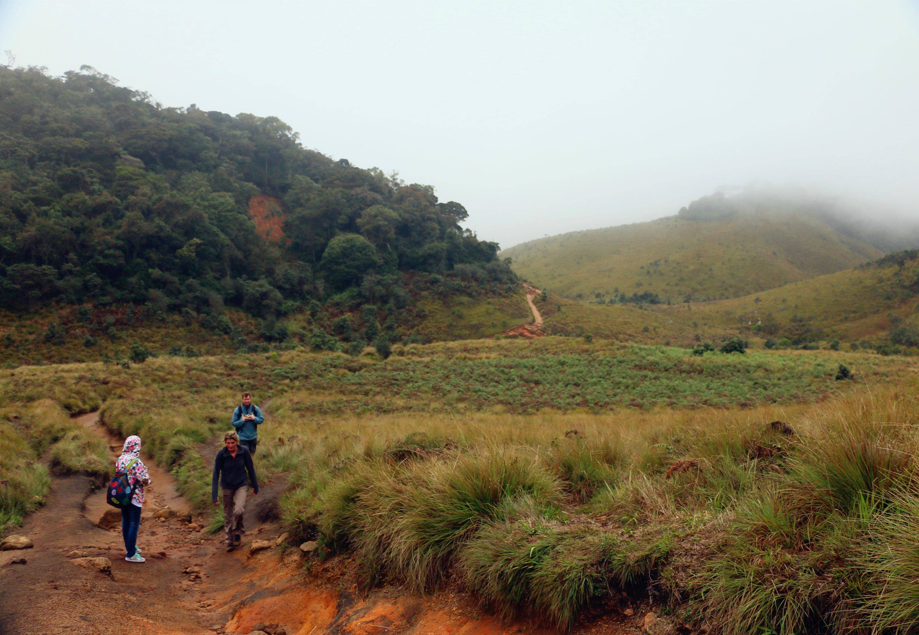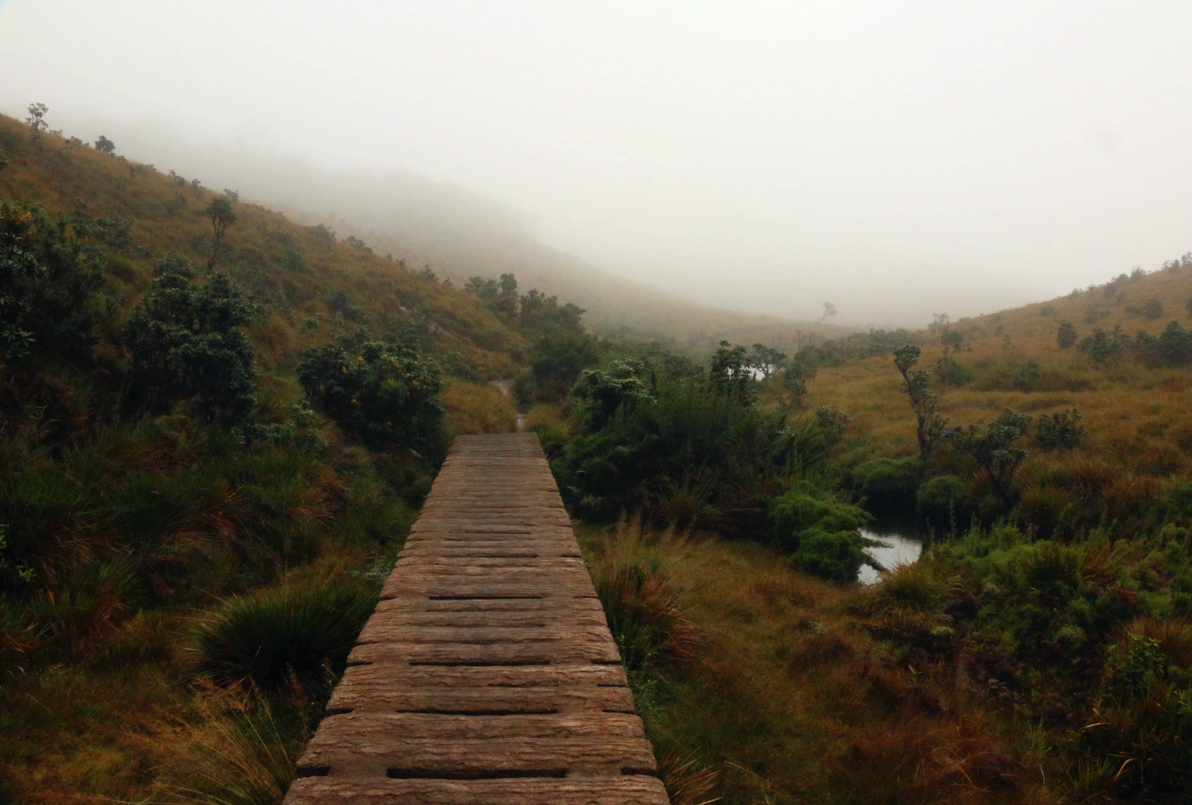 Nuwara Eliya本身可去的景点不多,次日清晨我们安排了去Horton Plains的徒步,也是朋友强烈推荐的景点。但当天依然是阴雨,景色本身自然大打折扣。但我个人还是觉得很值得一去,霍顿平原和茶园的青翠延绵非常不同,更有种秋天的萧索气息。整段徒步路程大概是9km,中间走过草甸,穿过树林,瀑布,直到被称作世界尽头的悬崖处(啊然后那天雾实在大神马都没有看到_(:з」∠)_),不算难走而且相当的清静~~