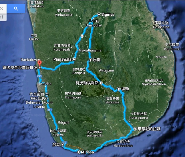 参照地图的话,是走了一个环线,北边的Anuradhapura和Polonnaruwa虽然朋友有推荐可以去看古迹,但因为时间有限+对自然风光更为偏爱就没有特意安排这段。