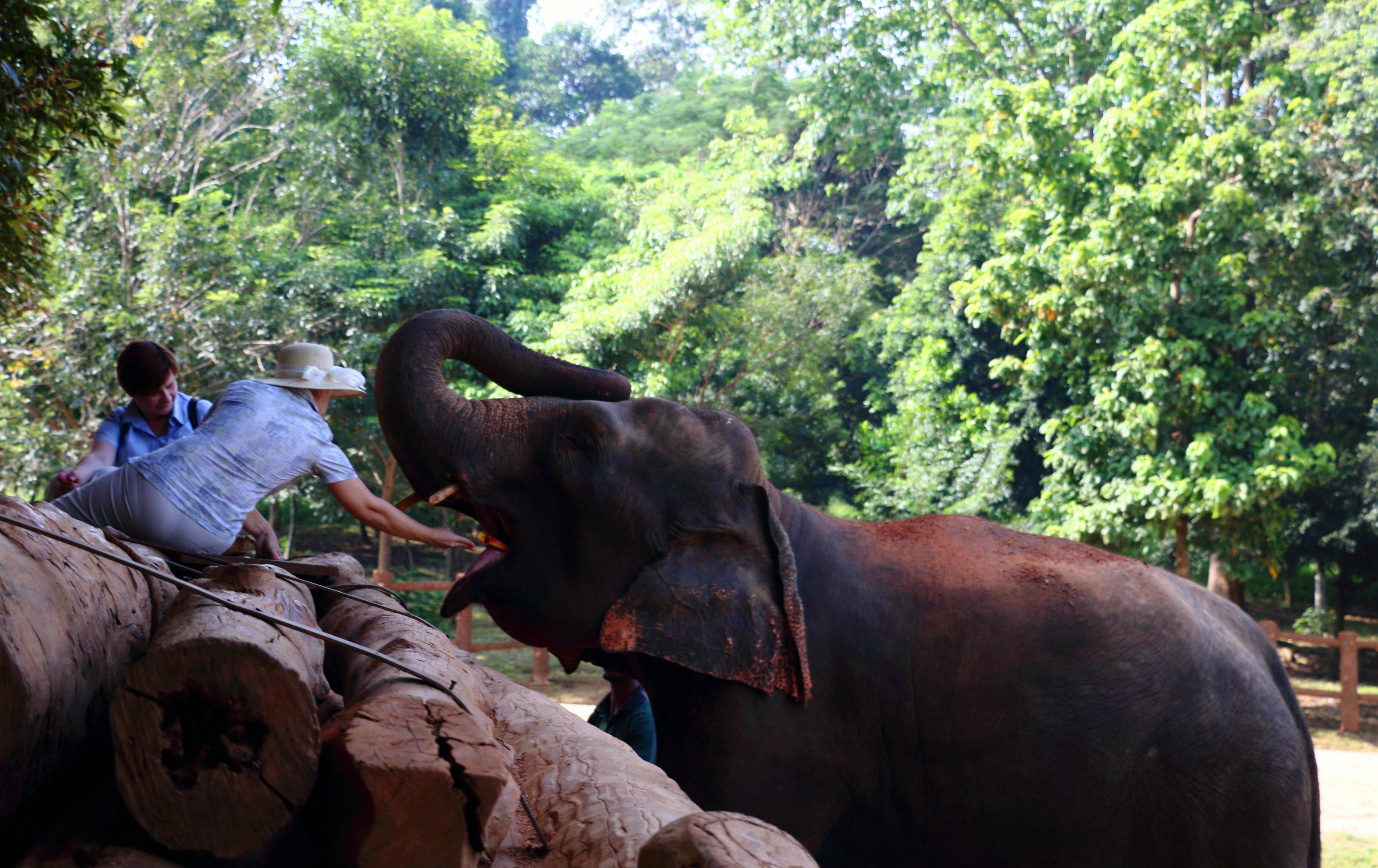 这里的一大看点是每天十点半象群会去附近的小河边洗浴,我和小伙伴先过去在上面占了个位置,已经有几头大象舒舒糊糊的摊在河中~