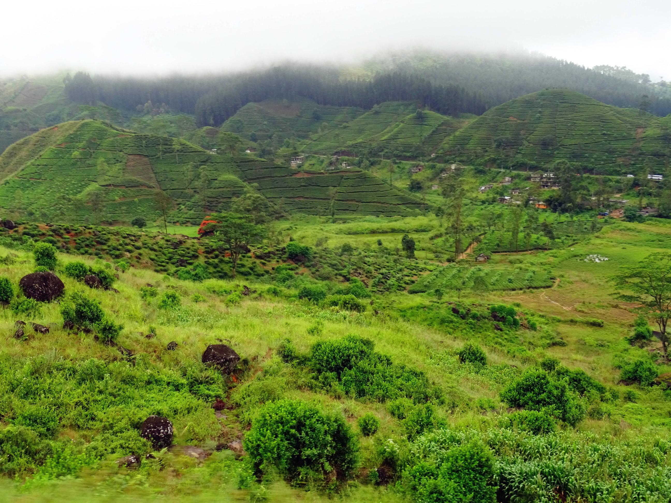 周围的景色由青翠的平原,路过的小镇,森林,渐渐转为延绵的茶园。当天下着小雨雾气迷蒙,但在绿色的丘陵之间穿梭有如走进童话~