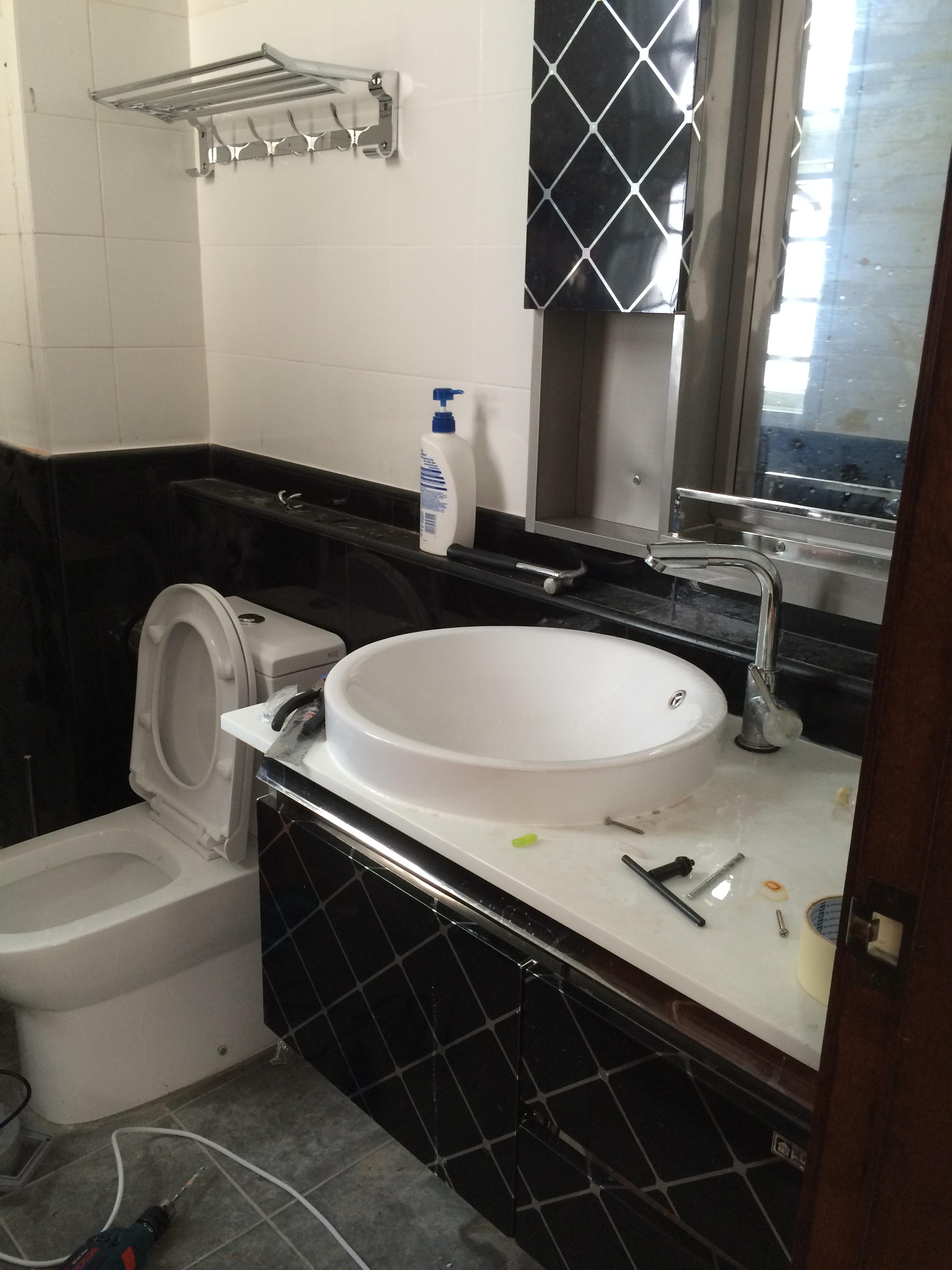 继续继续浴室柜,马桶,还有挂毛巾的~浴室柜是不锈钢的。没有买木的原因是怕厕所太潮了,不过各有各的所爱吧