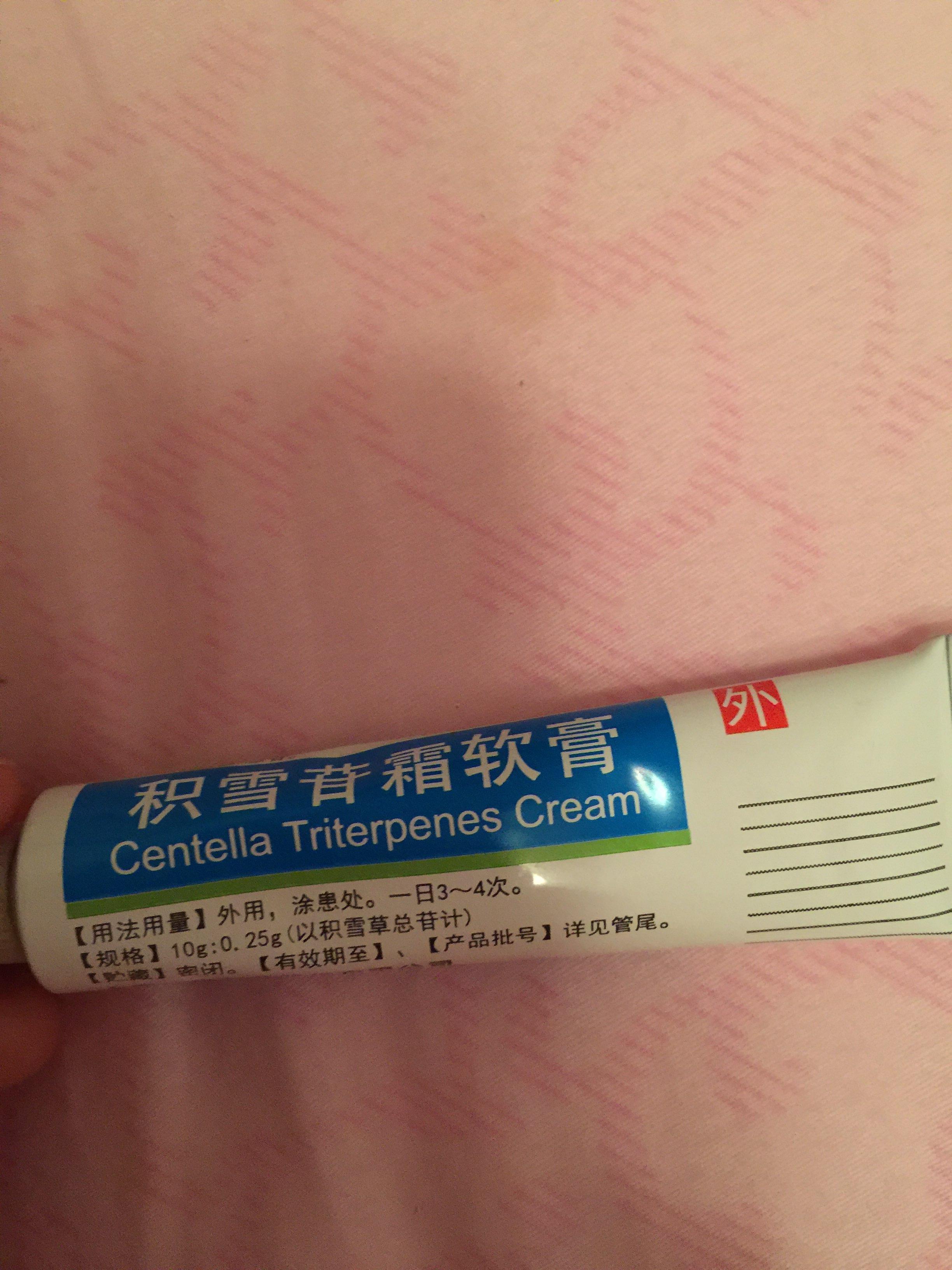 另一个是积雪柑霜软膏,这个是之前看医生配的,去痘印,最适合的是新鲜的痘印,如果你手贱了,挤了,破了,你涂这个药膏会好很快,连续用几天,痘印几乎不会形成。但是不适合大面积在脸上,不舒服,会痒痒的。大概是因为在修复?