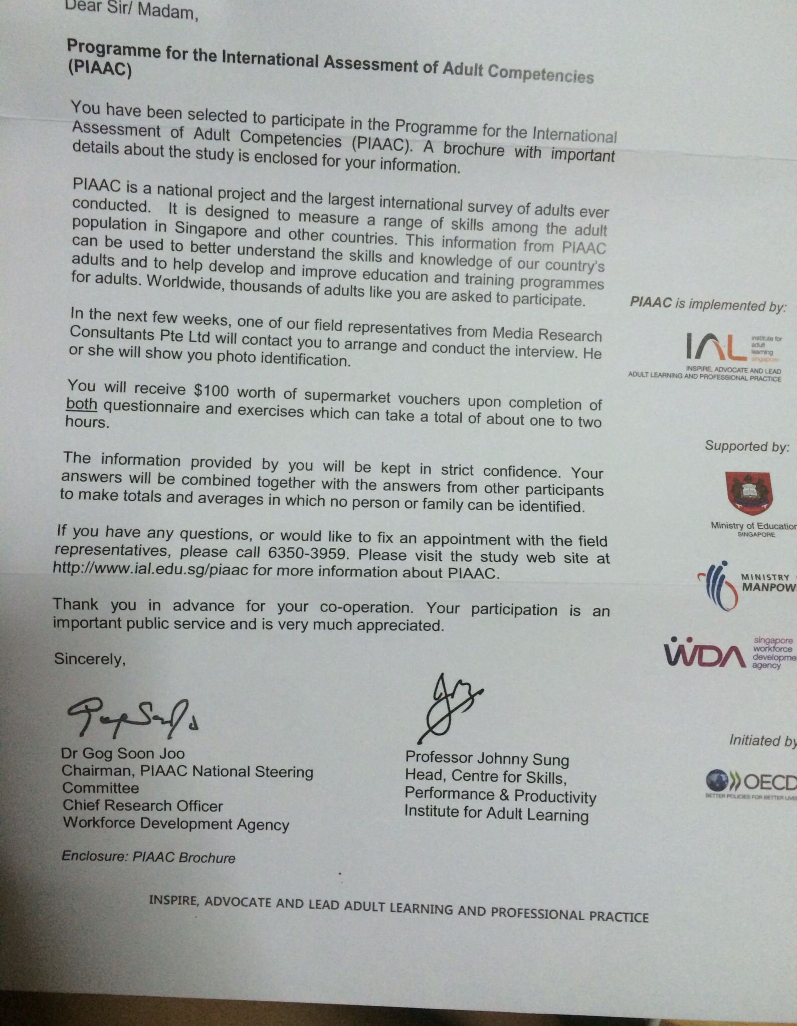 几个月前有收到过。如果同意做assessment,会有人跟你联系安排预约时间。如果同意做assessment,会有人跟你联系安排预约时间。