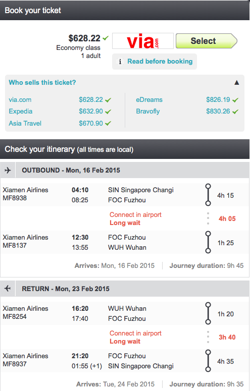 求帮助推荐分享:新加坡到武汉往返的最便宜路线