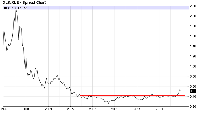 XLK(Technology)/EWS(Singapore), XLK/XLE(Energy), XLK/XLF(Financial)