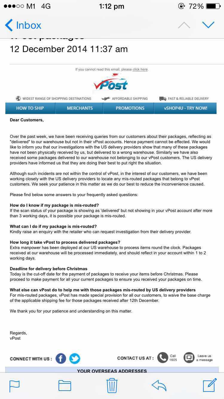 最近vpost很混乱我的包裹都是delivered之后快一周才出现在账户里的