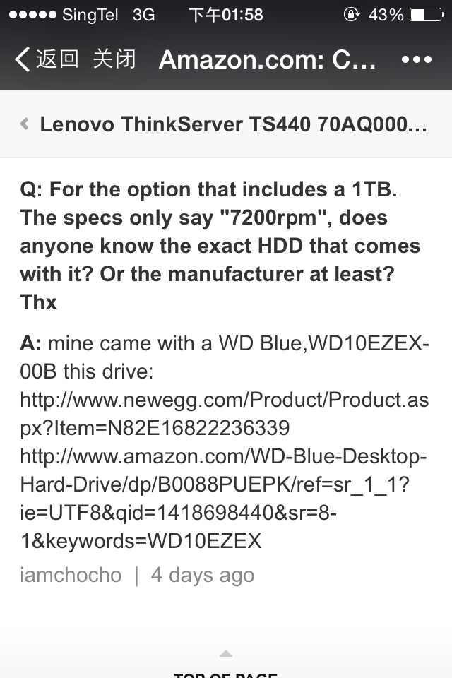 问了老公说不划算,理由如下:“什么用途?这个E3除了ECC内存奇偶校验功能外,其他和民用零售的I5一模一样。买来当个人电脑用各种蛋疼,买来当服务器的话,主板和内存必须支持ECC才能启用,可是450美元的配置,看上去极可能是普通内存和主板,那配E3就是蛋疼。硬盘是WD民用级蓝盘,设计指标8小时x7天,而不是仓库服务器用的7x24盘。看了评论基本上确定这是一个假服务器主机,只有CPU支持一些服务器功能,受限于其他配件,这些功能无法启用,所谓服务器只是个噱头。