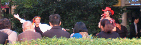 7 这里的人活得很有滋味。公共场合随处可见练太极的人,但是有些公共活动让我大开眼界:在离人来人往的人行道旁边几厘米的地方耍大棍。除此以外,还能见到交际舞、爵士乐风格的团体舞、还有耀眼的歌唱二人组合。