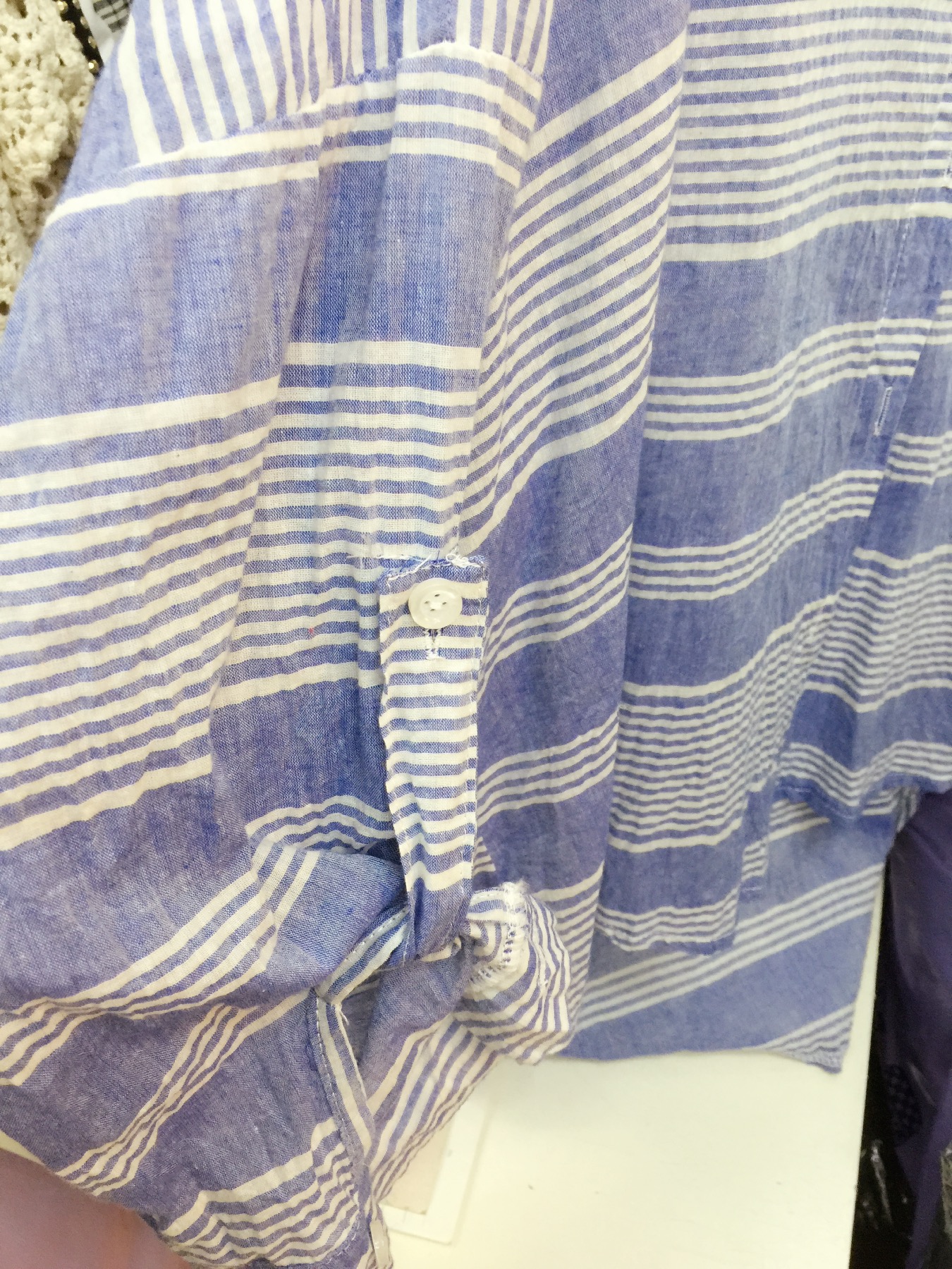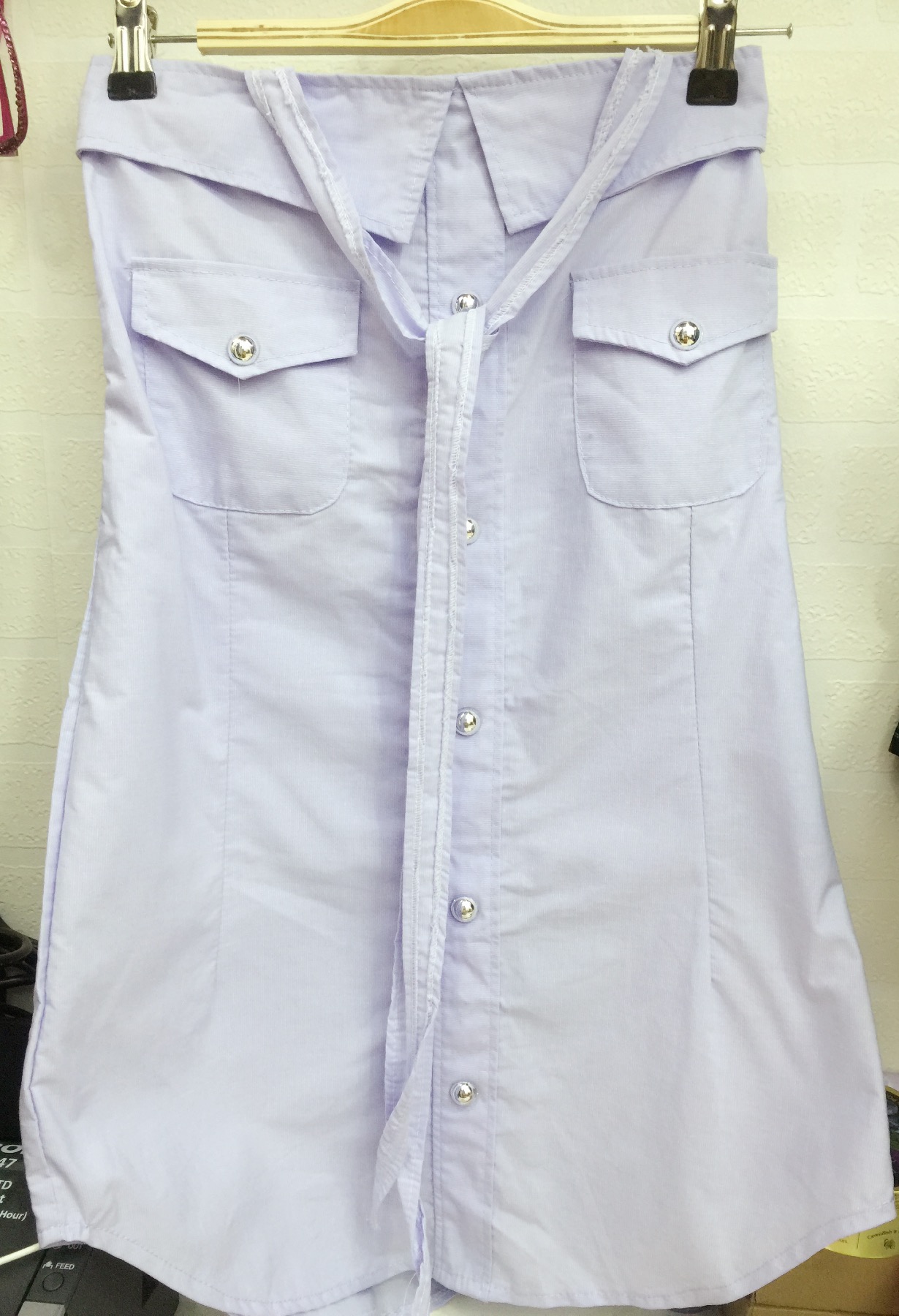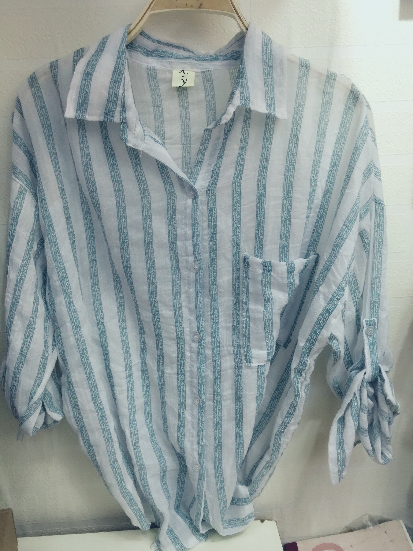 <br> <br> 前短后长的衬衫,颜色很美丽,料子类似棉麻质量的,这个买的时候贵,18<br>