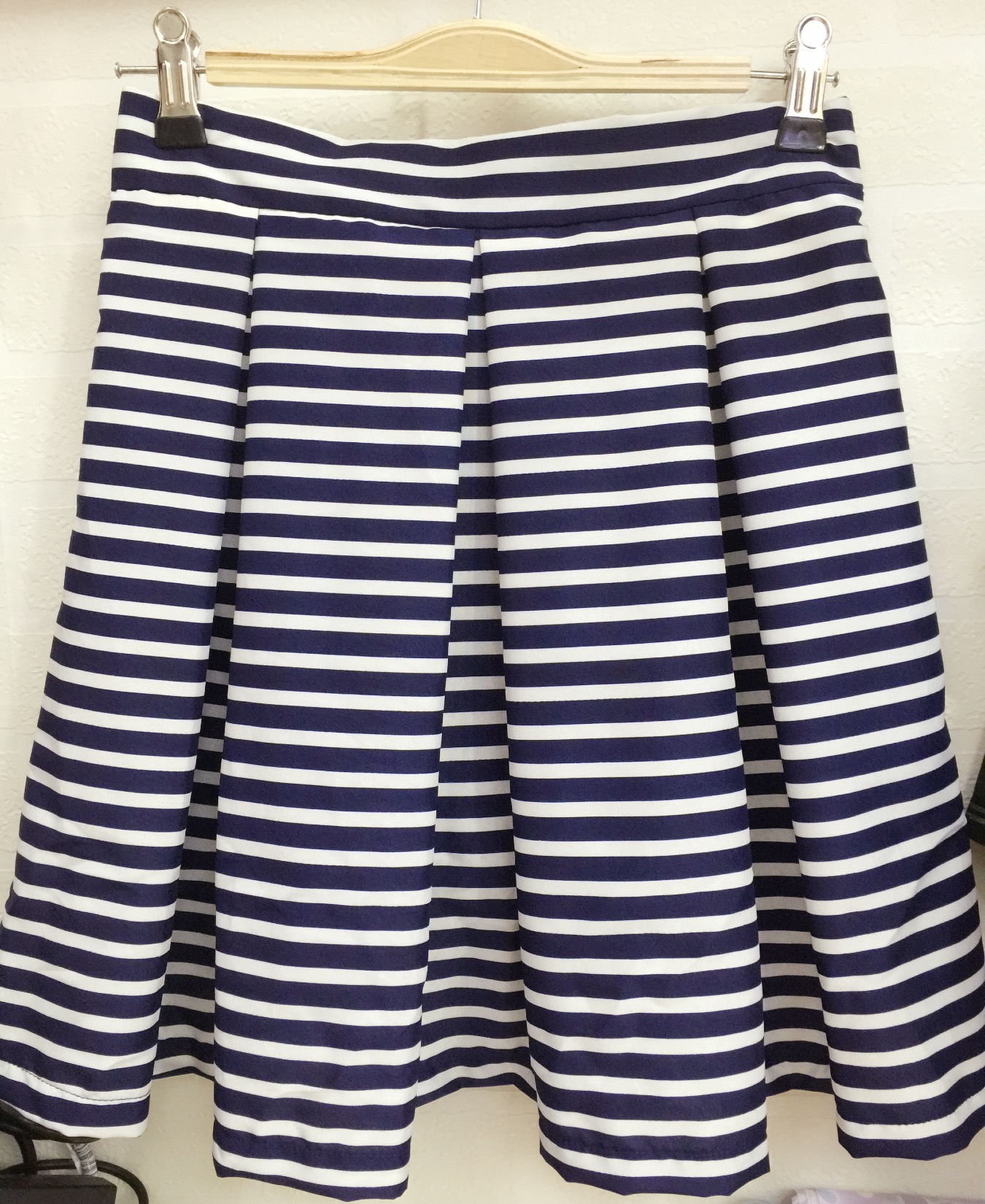 <br> 蓝白条纹绑带裙,弹力非常大,穿着很舒服的那种,穿了一次,洗了一次,15<br>