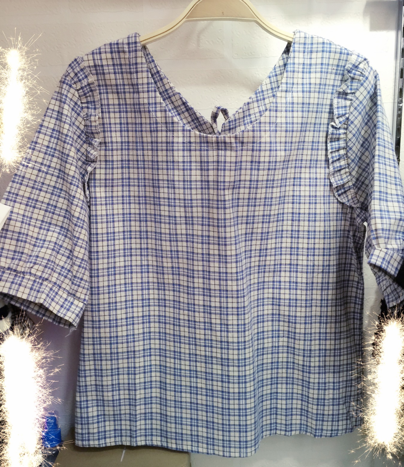 <br> <br> 格子木耳边中袖绑带上衣,15<br>