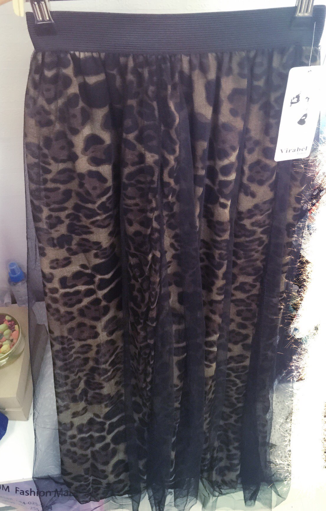 豹纹纱纱半身长裙15,松紧腰的,外面一层纱穿起来不蓬蓬的