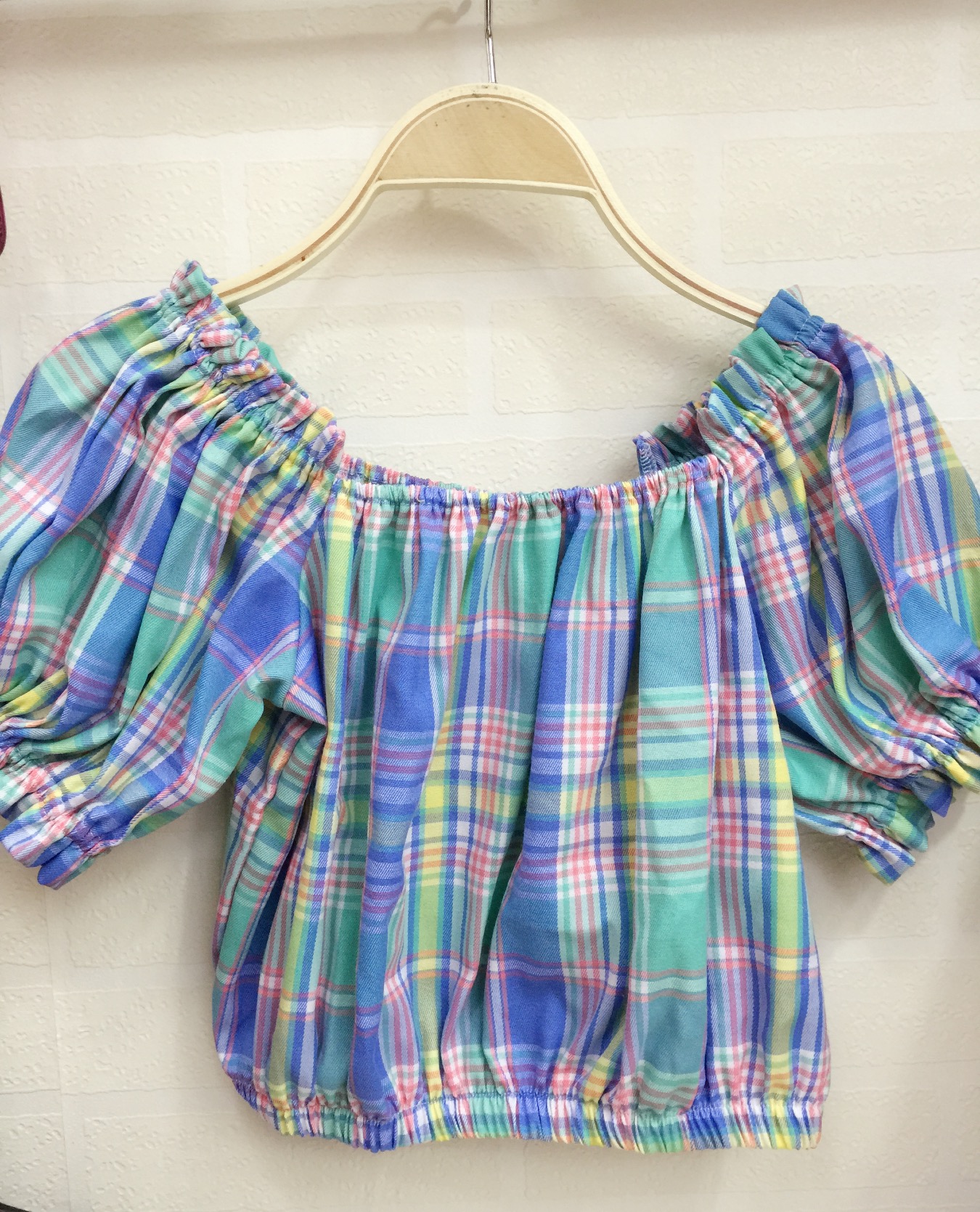 格子短款上衣,可做一字领穿,<br>
