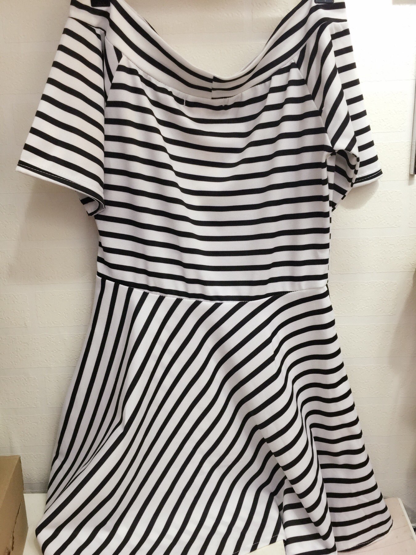 一字领条纹裙一字领的,收腰A字摆的那种,15