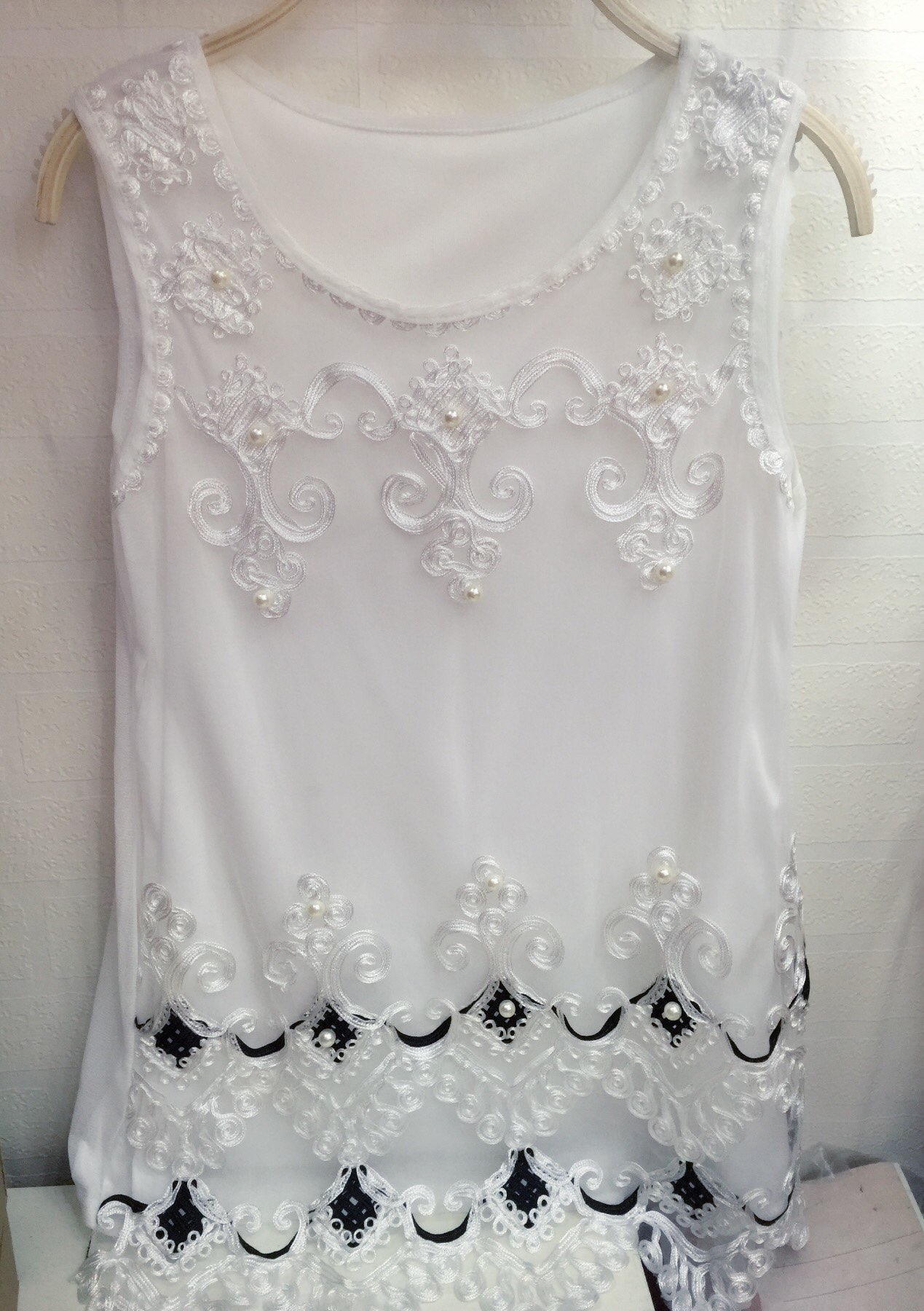 钩花无袖裙珍珠都是钉进去衣服里的,细节很好的,12块,均码