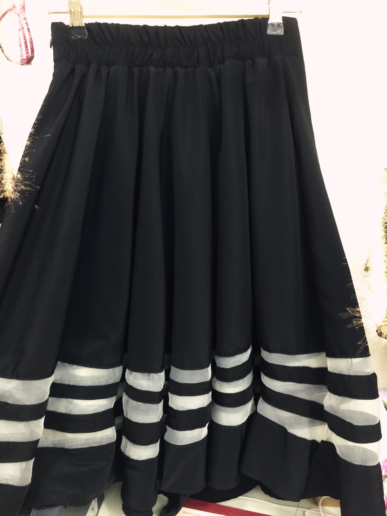 <br> 两个厚雪纺中裙,一白色一黑色,我没想好留那个,中裙太多了,我大概有10几条,喜欢的美女挑完我就留剩下的颜色。15一条<br>