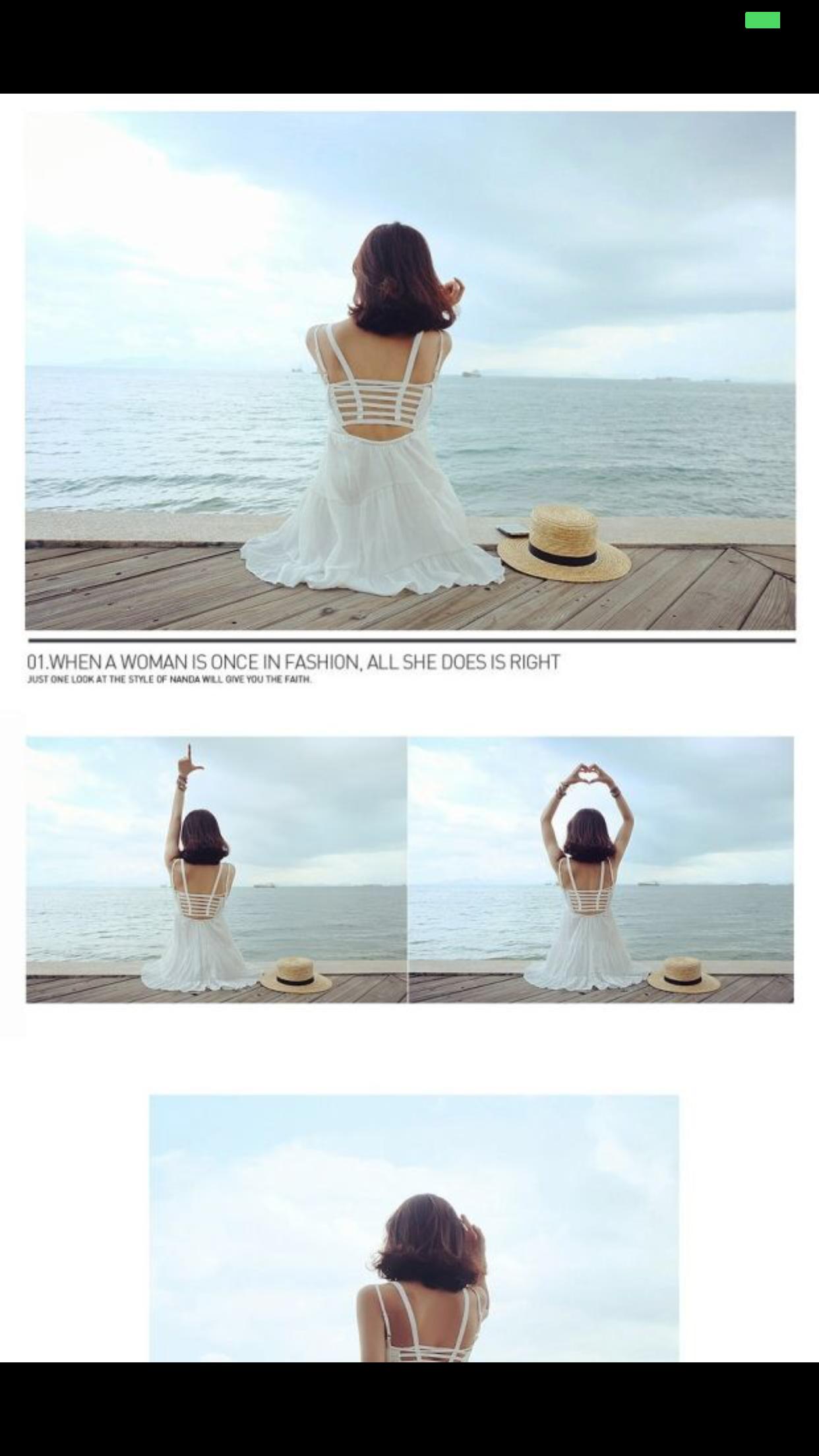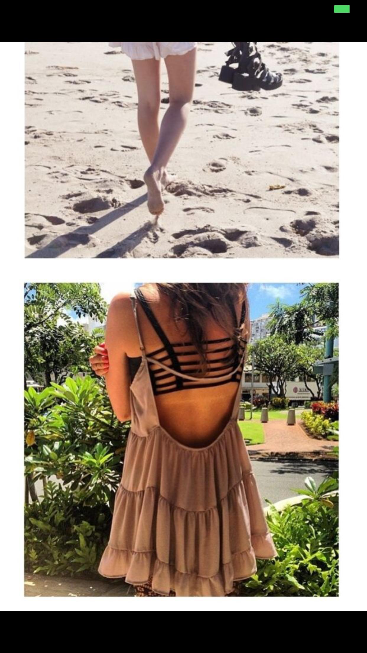 <br> <br> 吊带娃娃裙,大露背的,从网上看到的模特图,截图下来,穿起来就是这样的,里面那个一条一条的打底背心我没有的哈,我有米色白色,打算转白色,因为我比较黑,穿白色不是特别好看,15