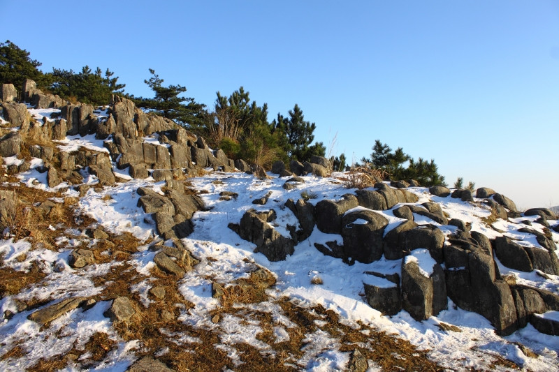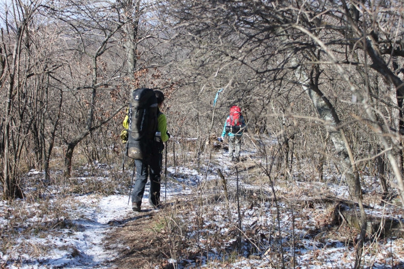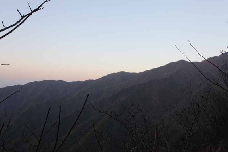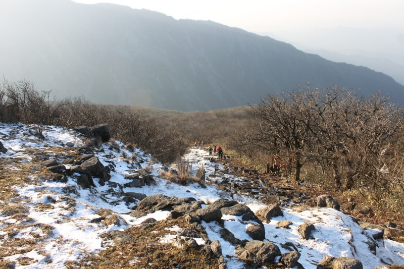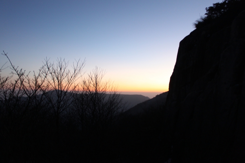 下了药王峰,天色已黑,于是决定绕开前面的千亩峰。因为千亩峰的下坡已积雪积冰,晚上下去会很危险。