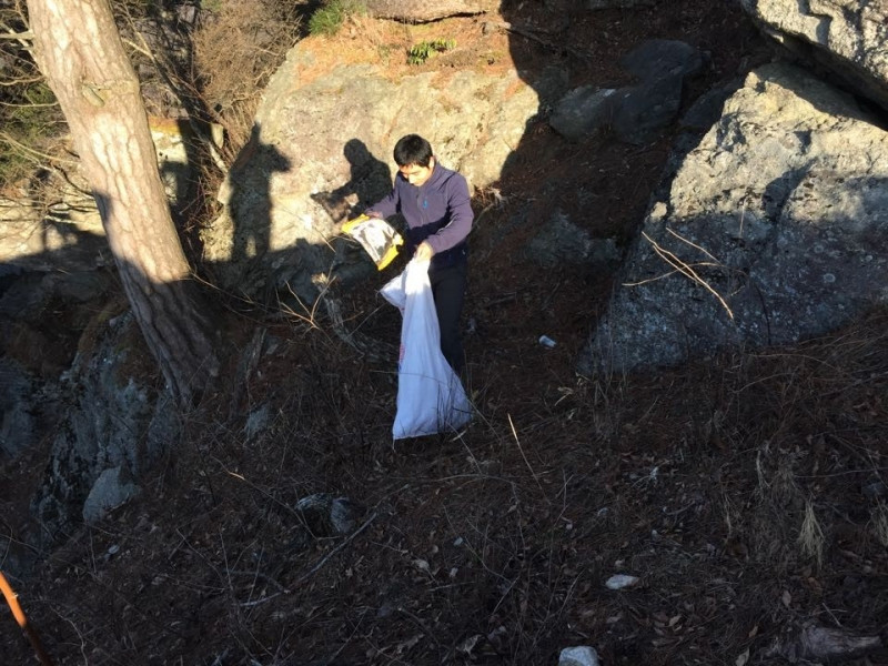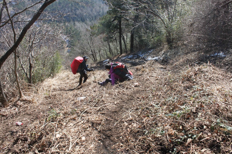此次穿越另外一个主题是 清洁山野,上图是领队在捡垃圾,可惜我力不从心,完全顾不上垃圾。。。