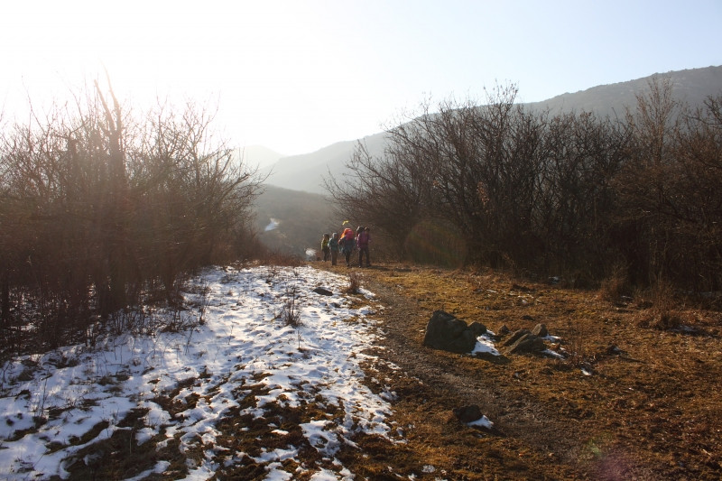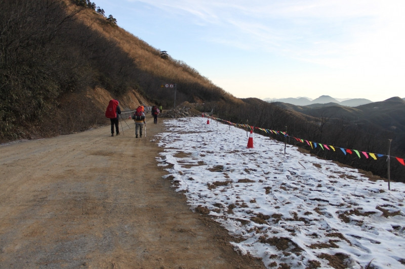 早上七点出发,由于第一天把行程拖了下来,导致后面的桐杭岗来不及走,所以一路沿着公路,直接到茅草山
