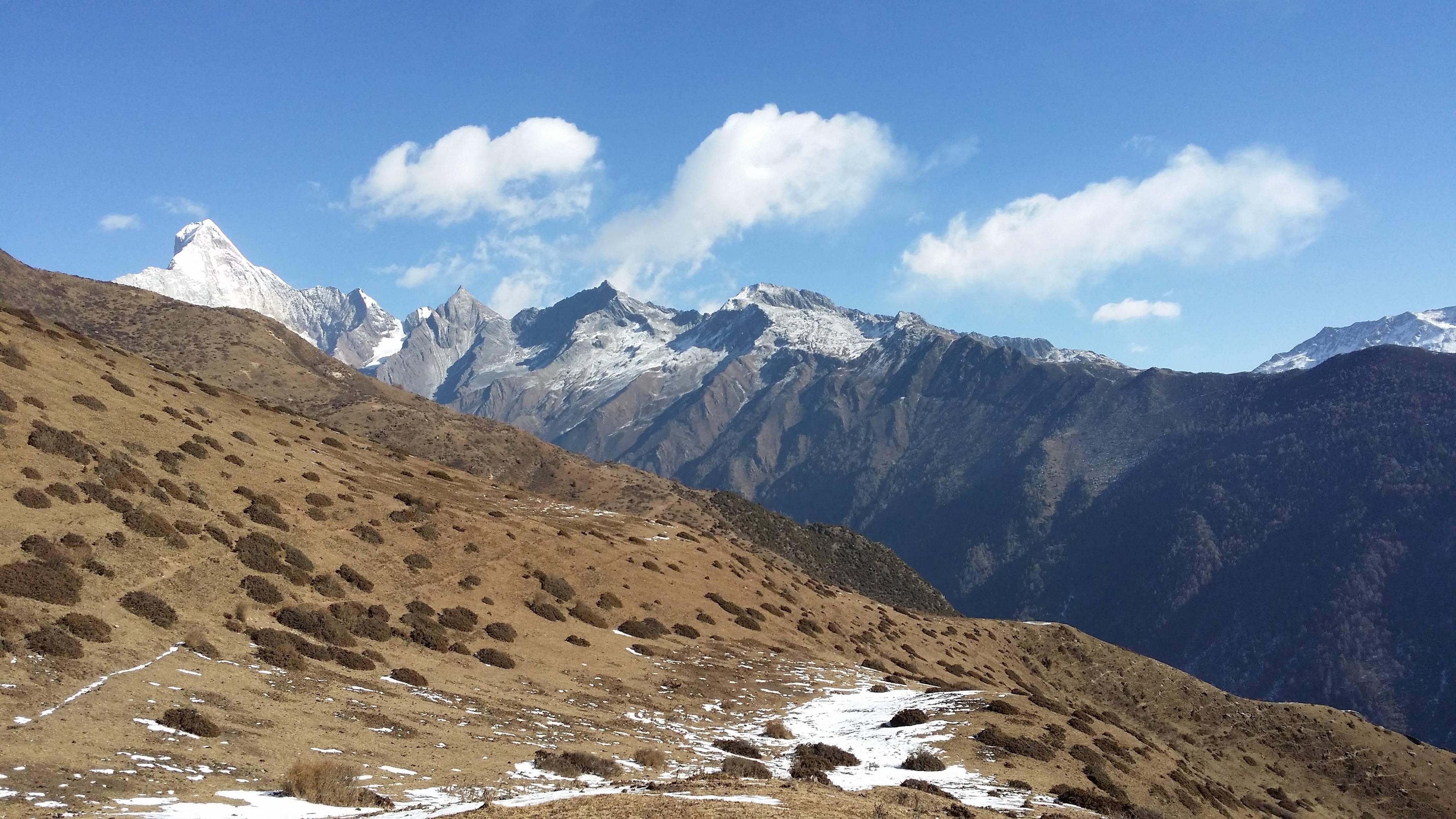 Day 2:适应性训练,日隆周围都是山,随便走走,到了海拔3900m处。远看四姑娘山。想到了张靓颖的一首歌”这么近,那么远“。