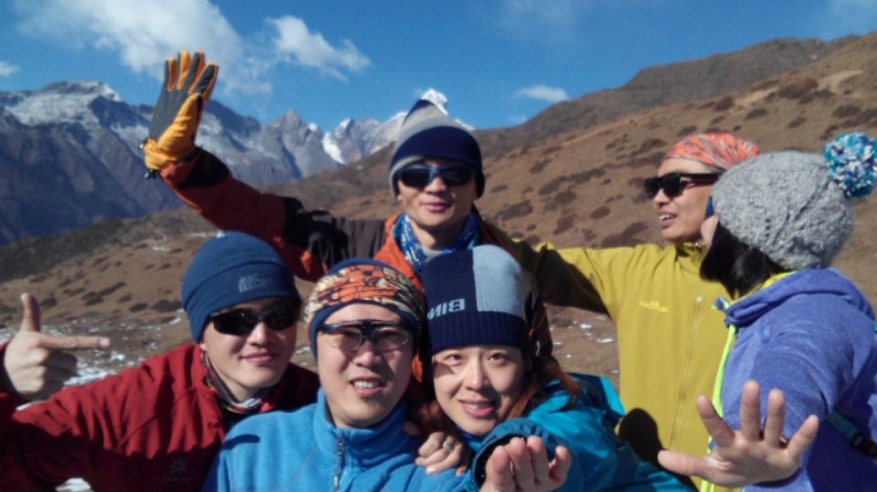 据登山管理处说,最近都没有登三峰的队伍,我们可能是2014年最后一支了。路上还遇到一队,本来是登三峰的,但是向导劝说他们说三峰因为下了雪,很难,不如登二峰,所以他们改变计划了。我们的领队因为三峰失败过一次,坚持要继续三峰,我们也就跟着了,事实证明,他也是经验相当不足。