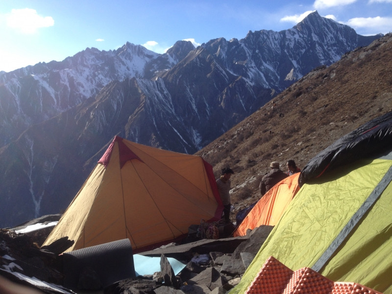 轻轻松松在下午三点到达大本营 - 4200m,其实这是个备选大本营,正式的大本营在4500m处,可惜冬天那里没水,只有这里有水。