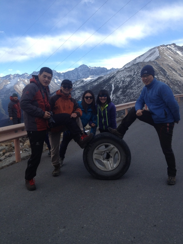 路上轮胎爆了,我们还是忘不了摆拍。。小伙伴们一路高歌。。
