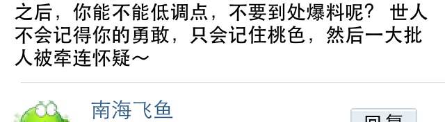南海飞鱼, 作为和你不一样的世人, 写了那么多的目的是想要告诉你,不是世人都和你一样只看到桃色, 没看到勇敢的。看到勇敢而无视桃色的大有人在。 麻烦你不要拽着我这样的世人为你背书。