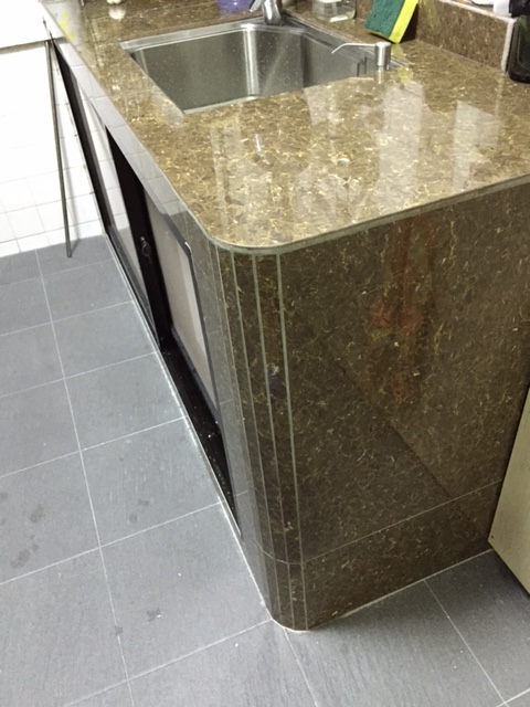 同事过年后刚装的的一个台面,订做费+国内运费1300多人民币,然后海运。15毫米厚的600多人民币一延米。会开好水盆洞等。