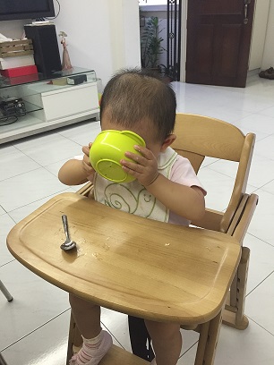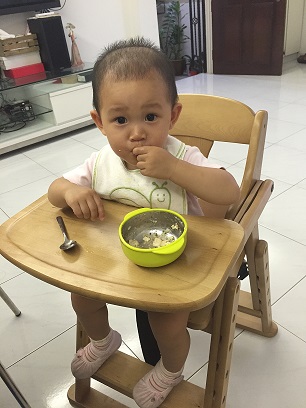 一岁三个月了每次都吃的一塌糊涂。吃完直接洗澡!