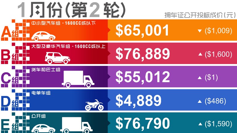 货车和巴士组别(C组)涨1元,至5万5012元。