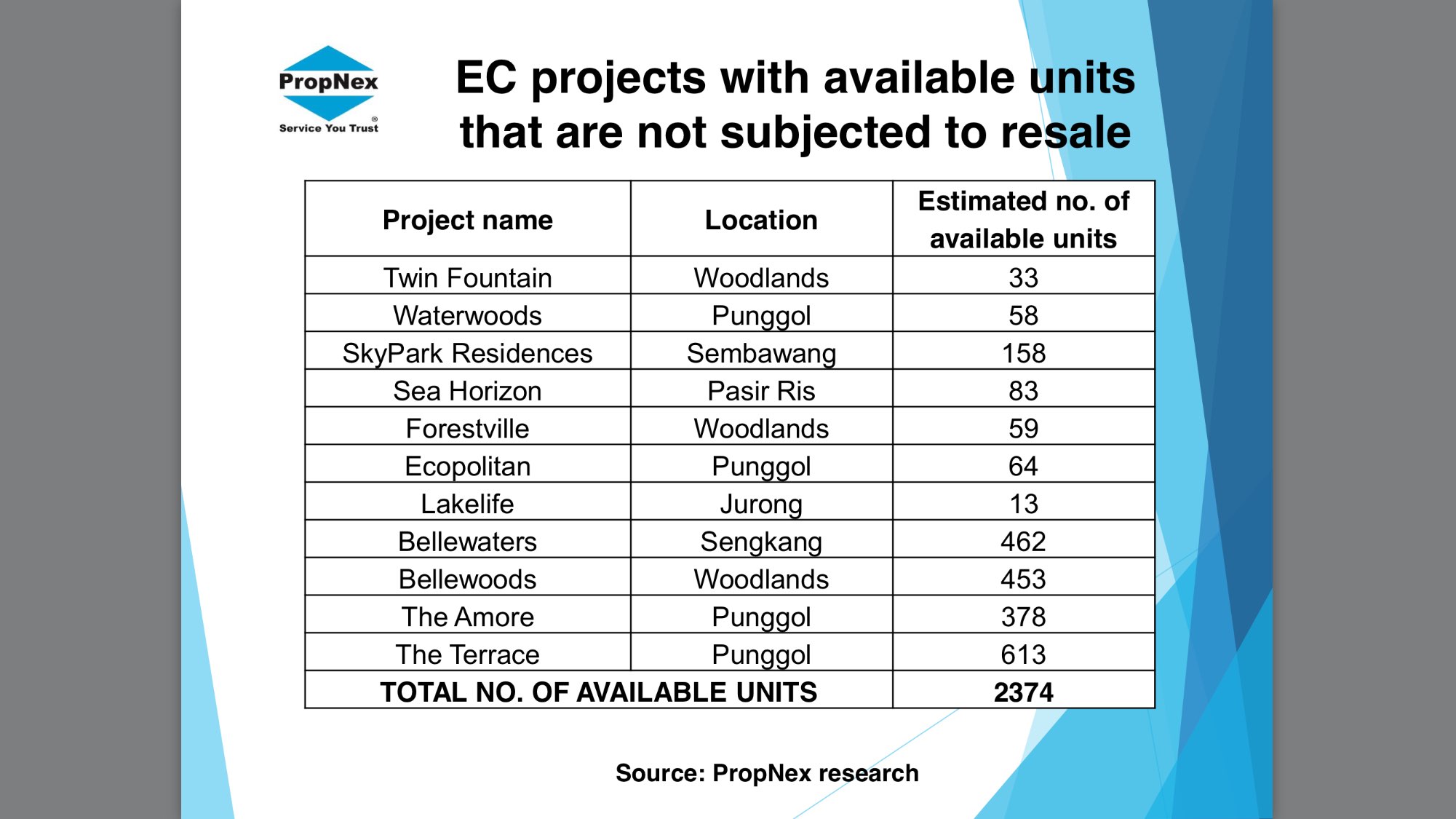 最近带人看admiralty 那里的三个ec, forestville, twin fountains, bellewoods,twin fountains, forestville 2013年就开始卖了,到现在还有些没有卖掉的。 -