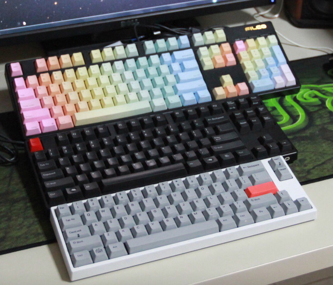 87的话上RF 87U吧,个人最喜欢白色的配色很经典,本地只有黑的卖。机械键盘都有各种手感问题,只有RF是完美的,不过硬要说缺点,就是键帽选择少。taobao的浸染成品基本上都是给Cherry和Filco用的。