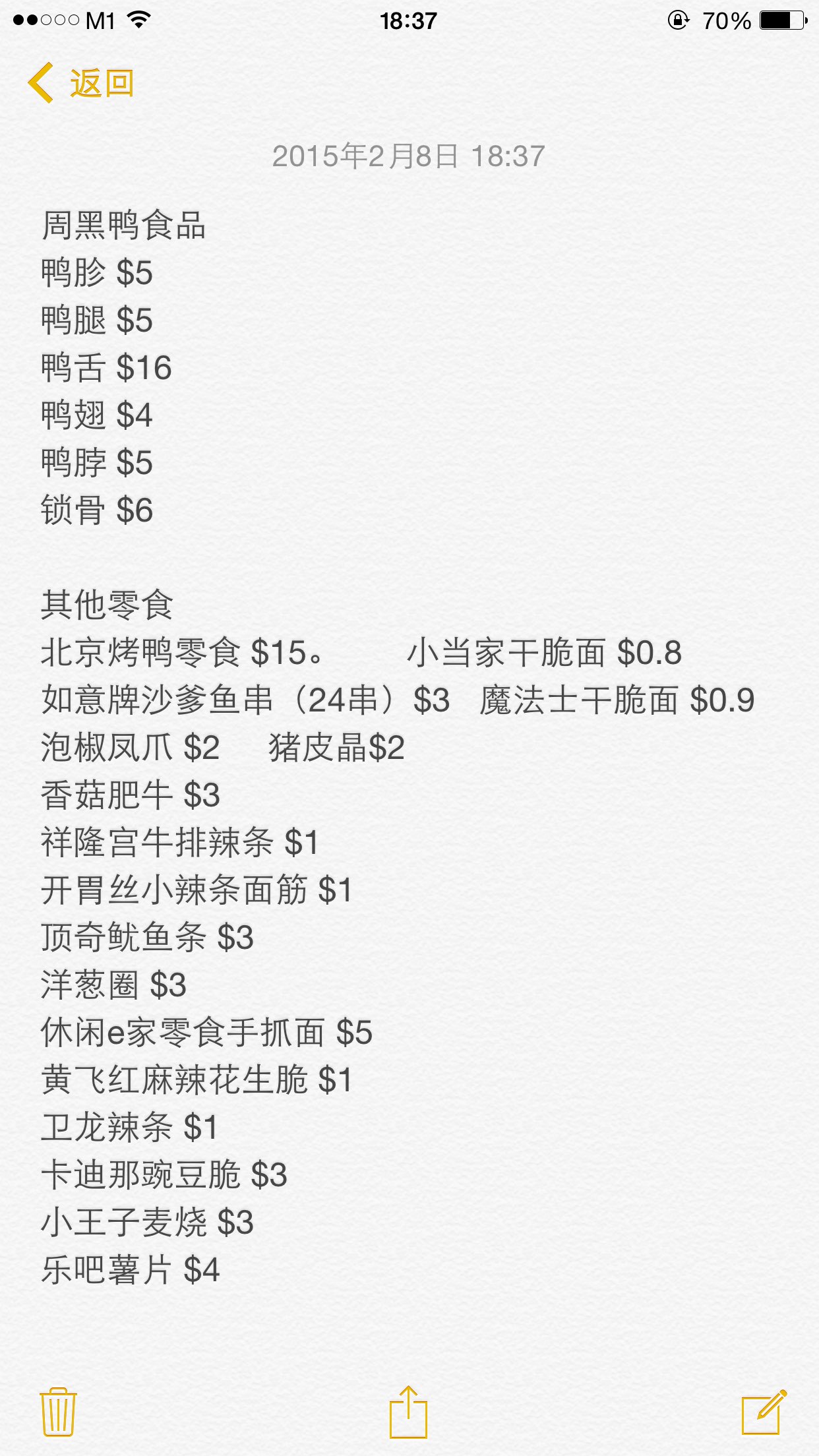 shangshang • • 59063 次浏览本人准备进货过年后发 不需要定金 统计好全部加我微信fkyyy1210 上门取货或者mrt取 零食全部大优惠 周黑鸭系列 其他零食全部降价 要的尽快加我 统计好要多少 一起发过来 没有你想吃的没关系 想要什么我们给你进货