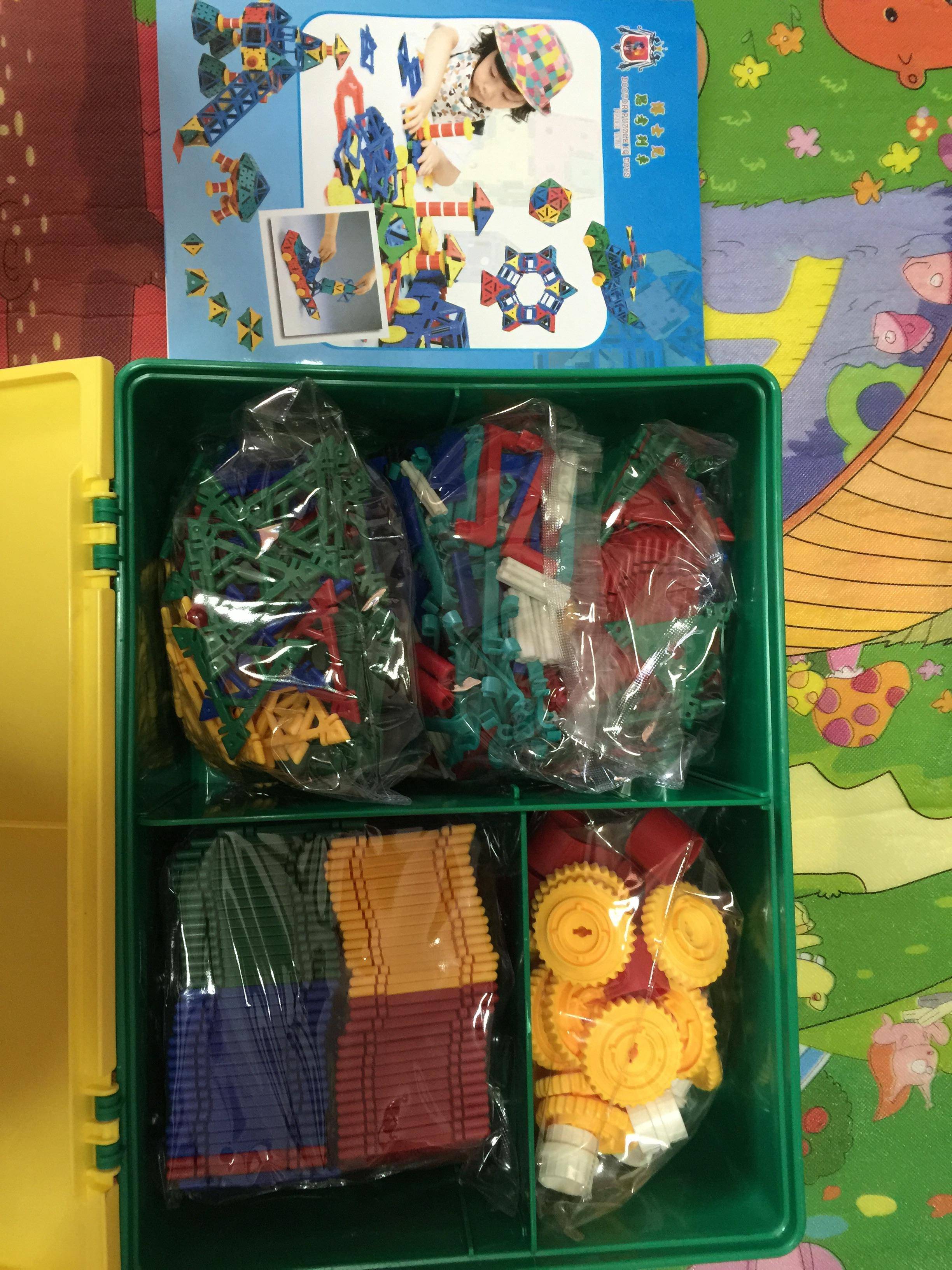另一款创意几何组,宝宝现在还不太玩的了,我自己正在摸索中,等宝宝再大一点可以引导他一起玩,这款1000片组是200新,500片组是120新,感觉这两款好益智啊!我自己买的一套1000片组的,然后送的一套鲁班塔。昨天逛牛车水办年货时偶然发现的一个摊位,经摊主某经理展示后,我就挪不开步了,立马把两玩具都拿下了,一款是鲁班塔,另一款是创意几何组,都来自台湾。