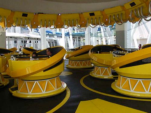 这个游戏看起来像过山车一样很好玩,实际上就是坑爹!你双脚在空中吊着,用53秒的时间平滑的飞过,就好像几只烤鸭一样...这个绝对不值得你花时间排队。
