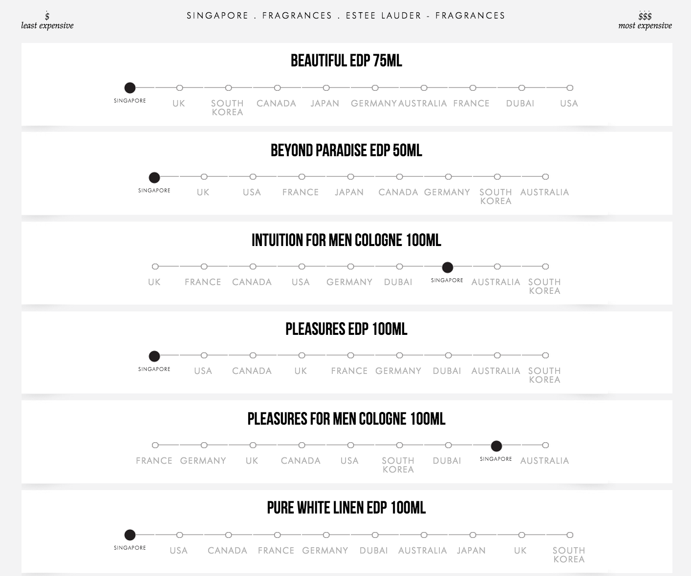 据不完全统计,樟宜机场的Estee Launder是各大机场里最便宜的。