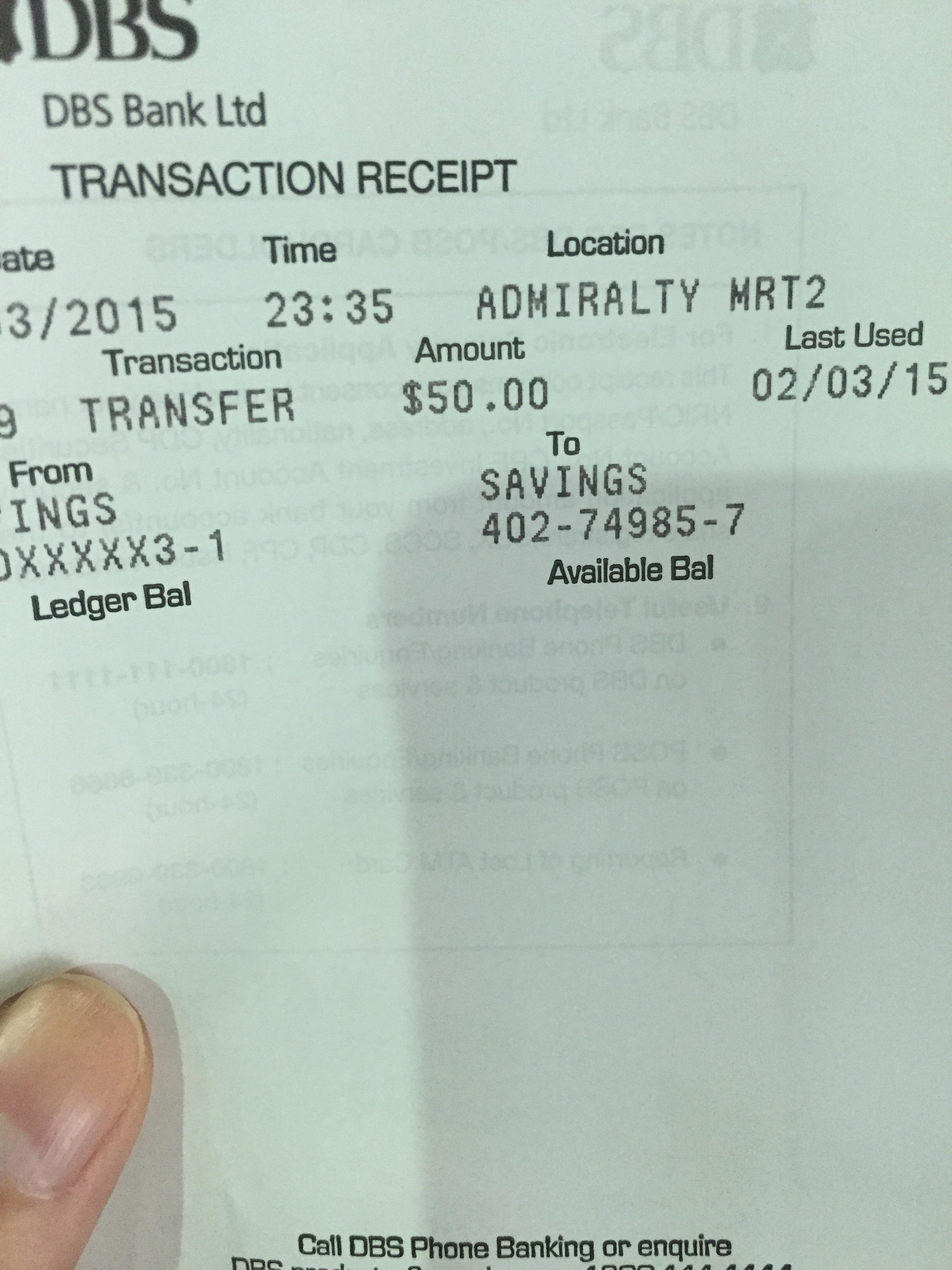 转帐atm transfer from DBS saving