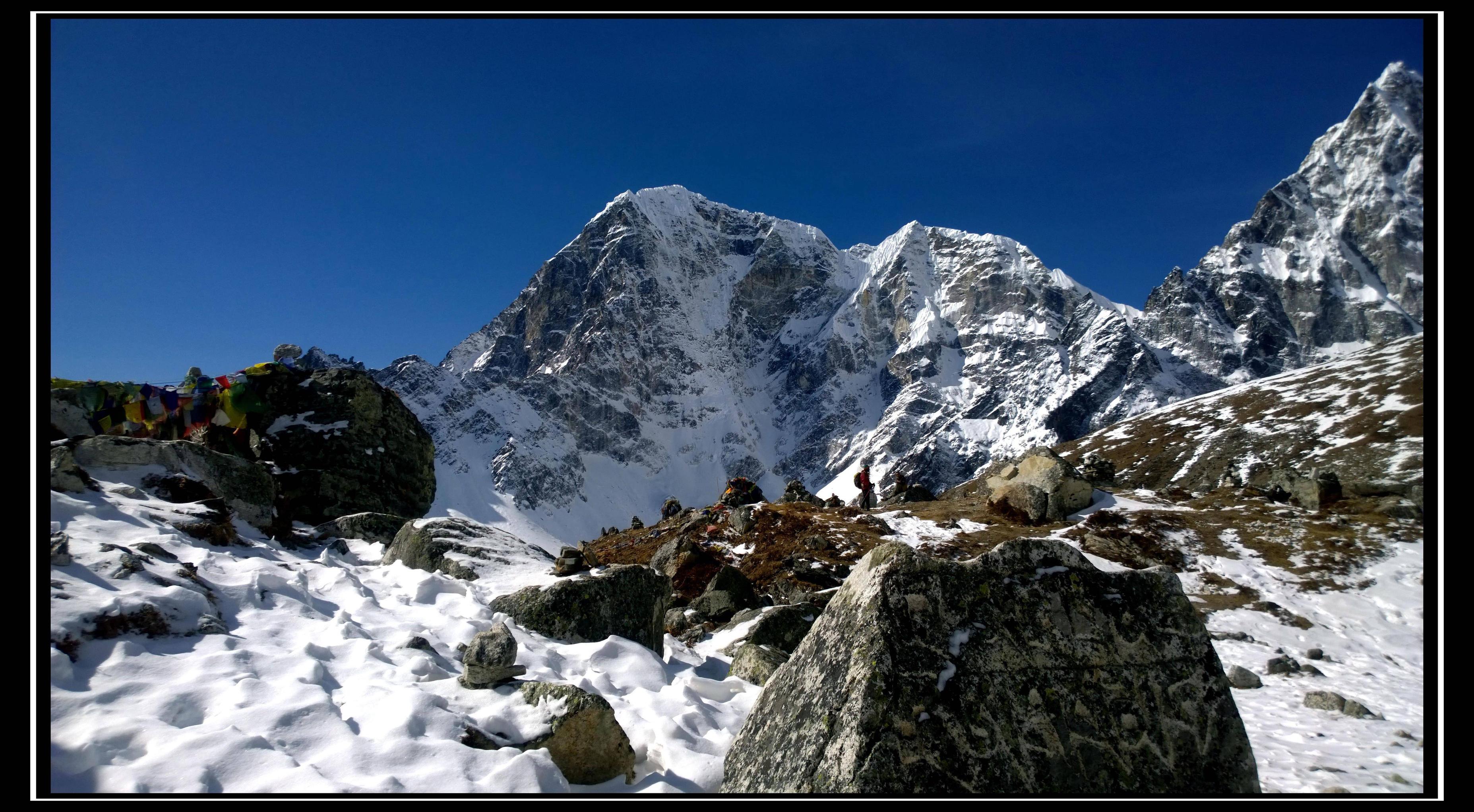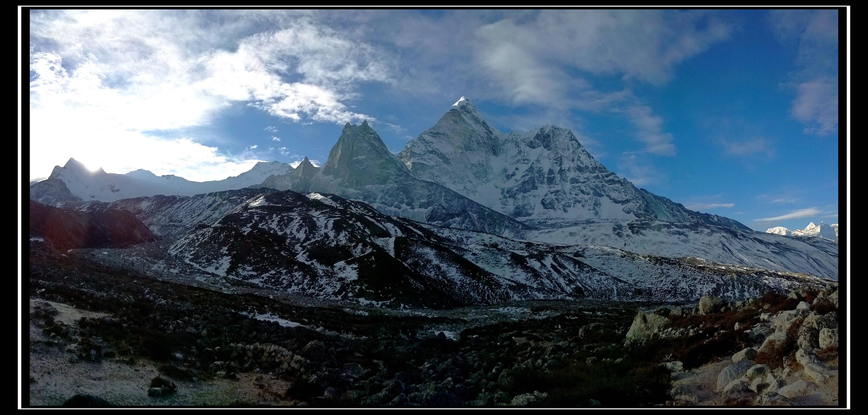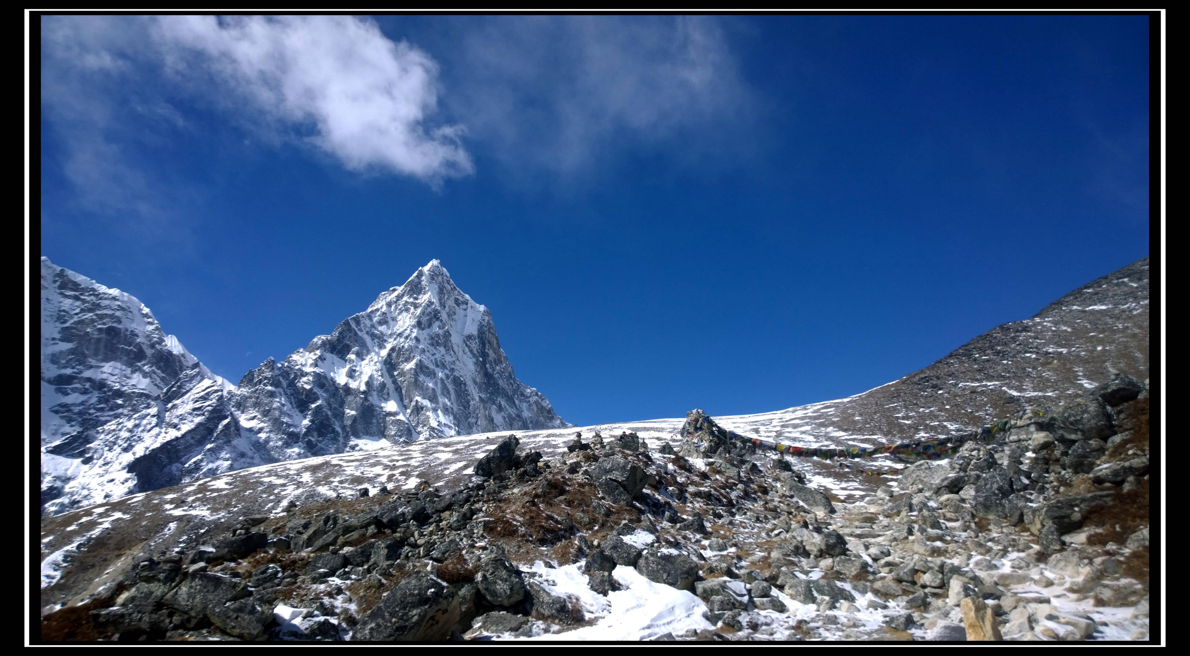 回到Dingboche,用完早餐继续上路。Periche位于峡谷底,而我们走的是绕山腰过去的那条路。一路都是与对面的雪山隔着峡谷相望。