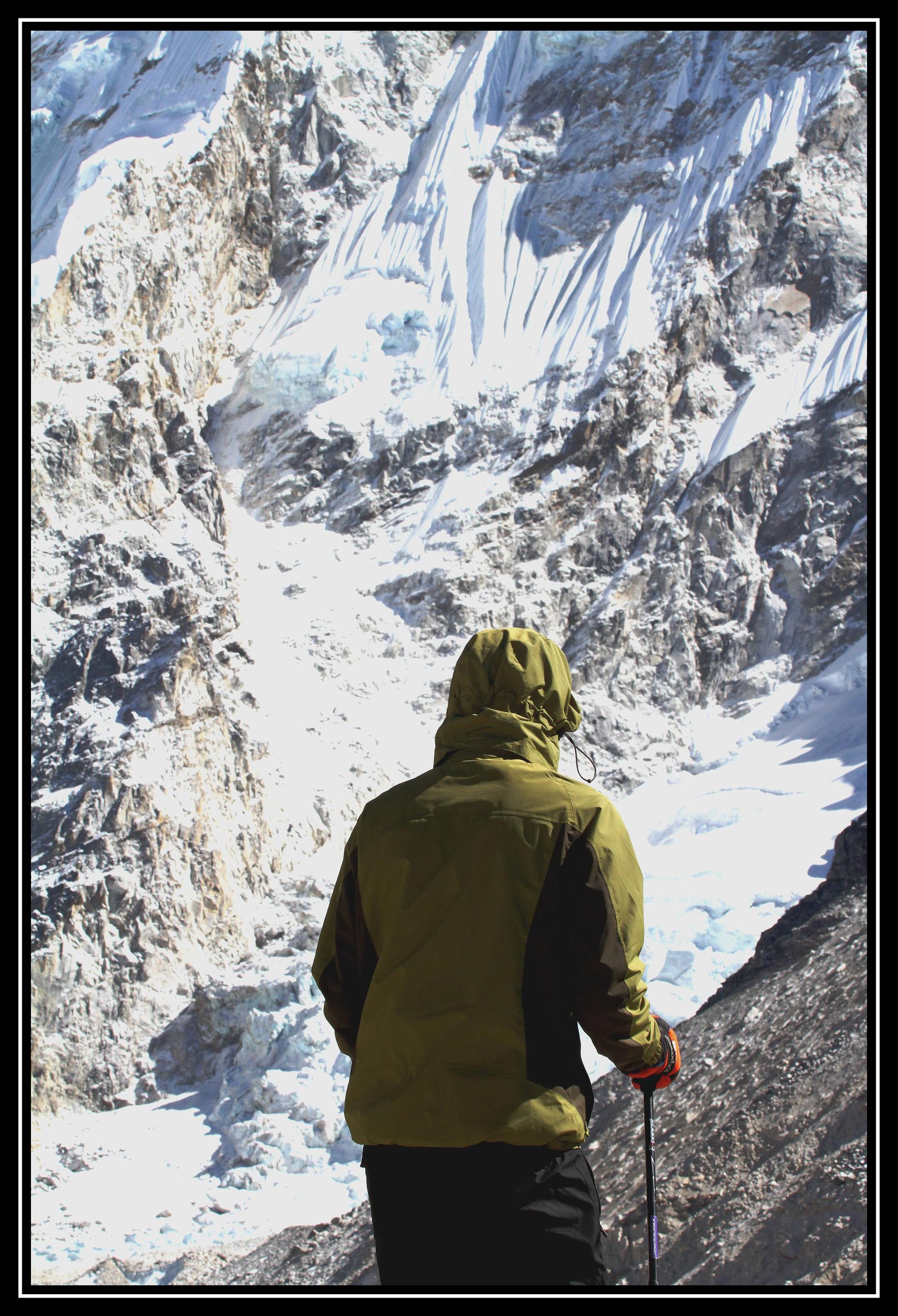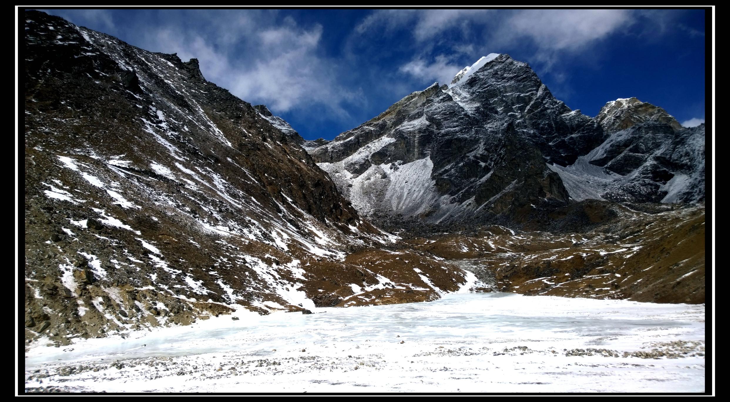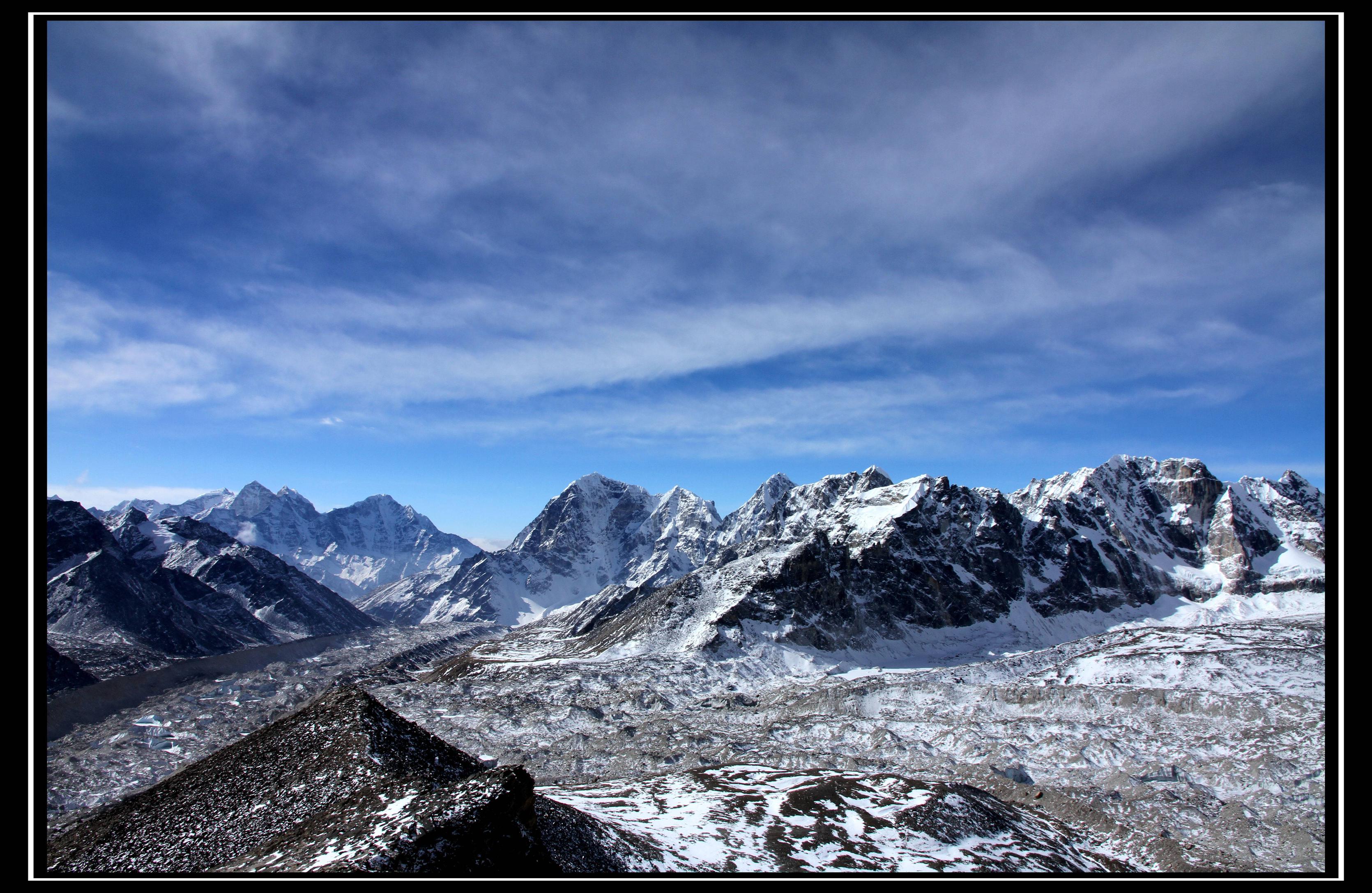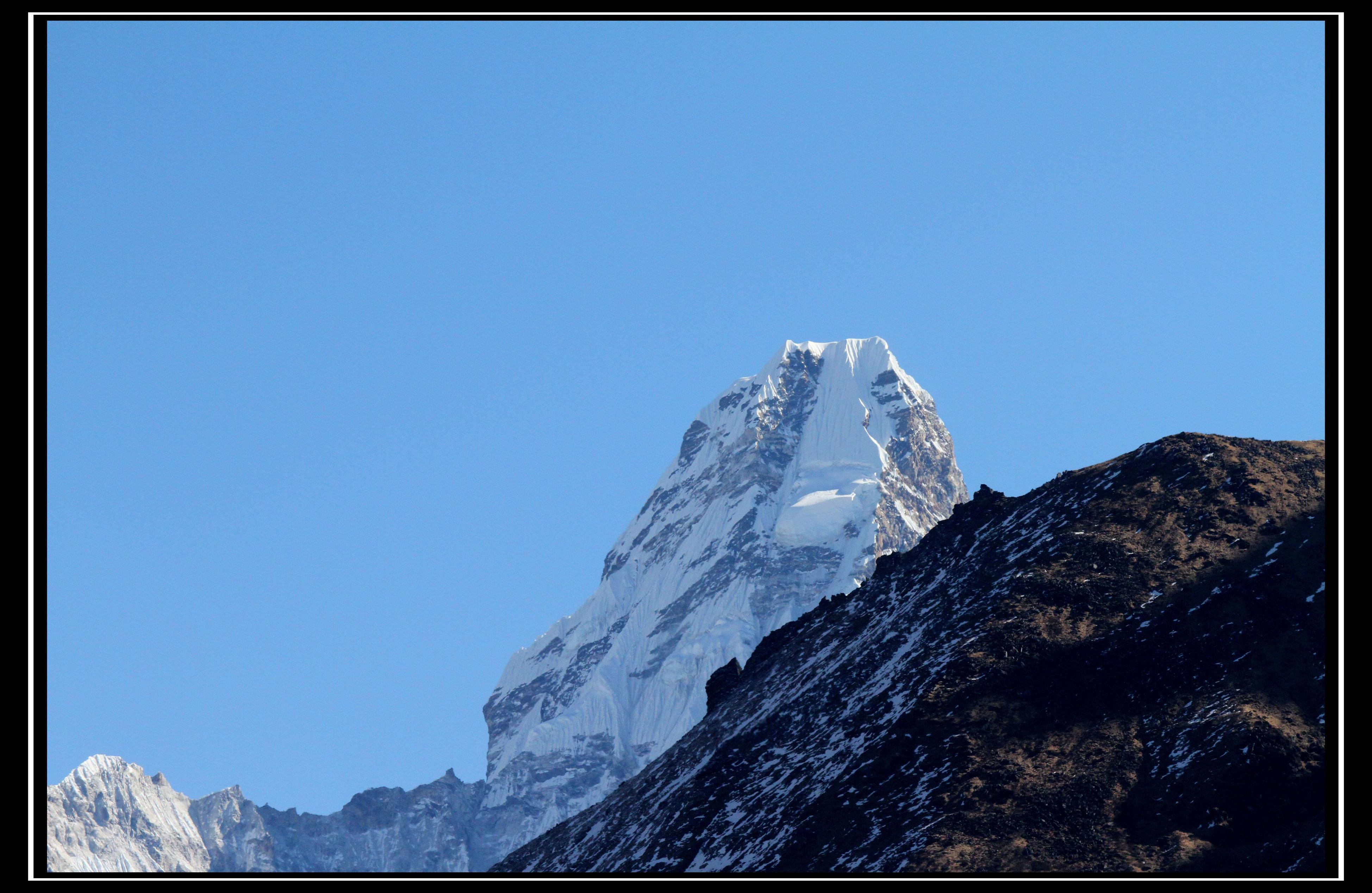 徒步十一日,基本上每天都在雪山环绕下行走。EBC路线,其实是沿雪山融水汇聚成的河流冲刷而成的一条沟壑逆行而上。二月是尼泊尔的冬天,也是尼泊尔的旱季,积雪已经融化了许多,除了背光面的山路,很少有时候是需要行走在雪地上的,天气也晴朗,徒步的人也少,比起十月份旺季也有不少优势,只是这个季节高山上的雪子都冻结成冰了,无缘见到雪山在湖水上的倒影,这大概也为再访EBC留下的借口与愿望。