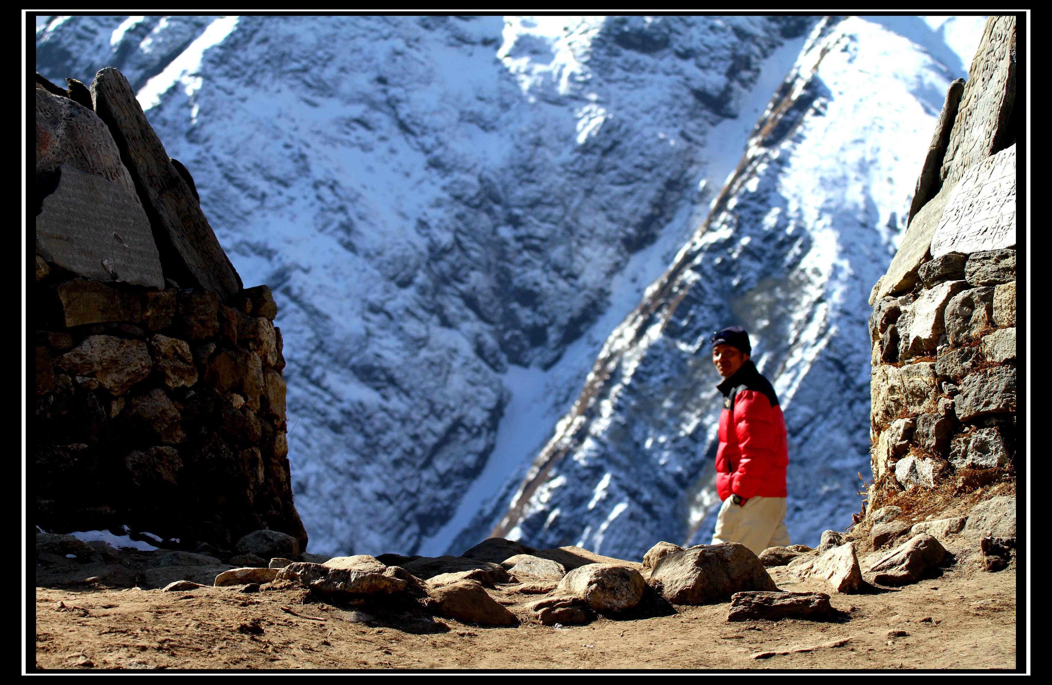 我们的向导兼背夫。年纪约莫四十了,还童心十足,见到一棵歪脖子树就爬到上面去,摇着树干喊Monkey Monkey,在Pangboche还跟我打了一盘斯诺克,一直做施法状干扰我进球,还蛮有意思。背夫出身,英语只会寥寥一些,不过至少指着山峰能喊出名字来的。