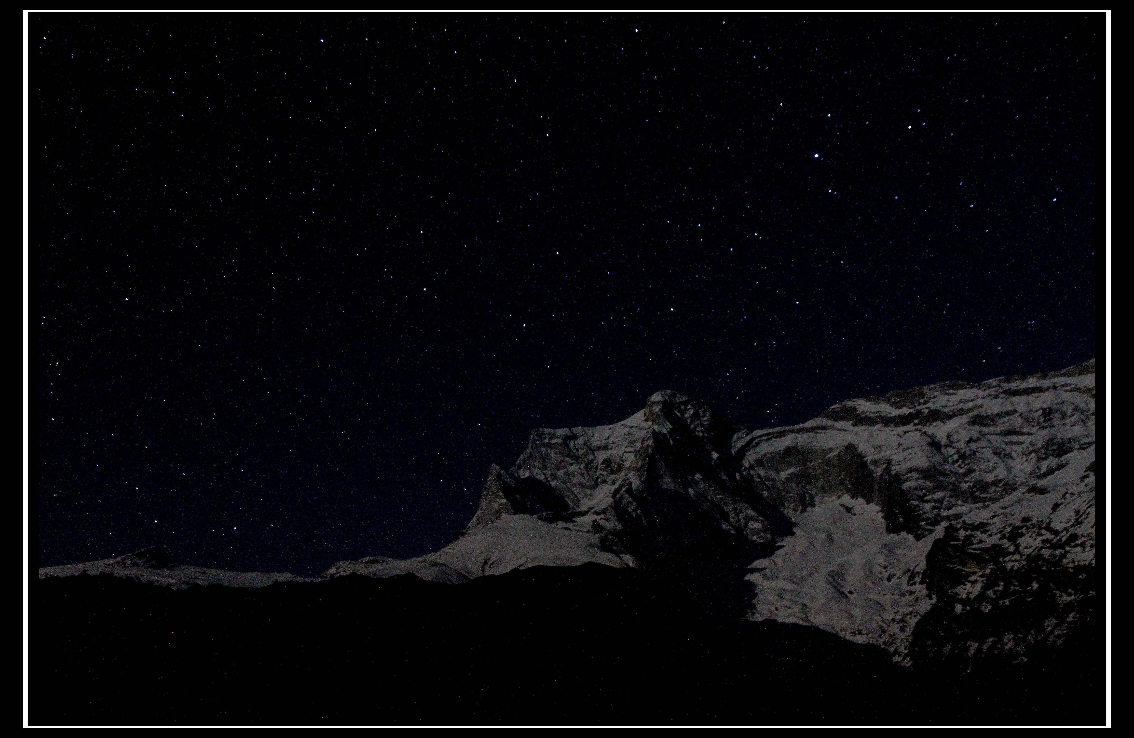 海拔由3800到4400,第一次进入四千米界。 Tengboche位于矮峰的山顶,四周为各大雪山围绕,视角极佳。一早爬起来拍Tengboche的日出,冷得直打抖索,脚冻得简直像结了冰似的,所以设好脚架之后就一直绕着屋子转圈,脚才能暖和一些。 结果是起得早了,还能见到满天的星星。等了一个小时才见到鱼肚白,准备工作没做好,连东南西北都分不大清楚,草草拍了一阵就收兵回屋了。