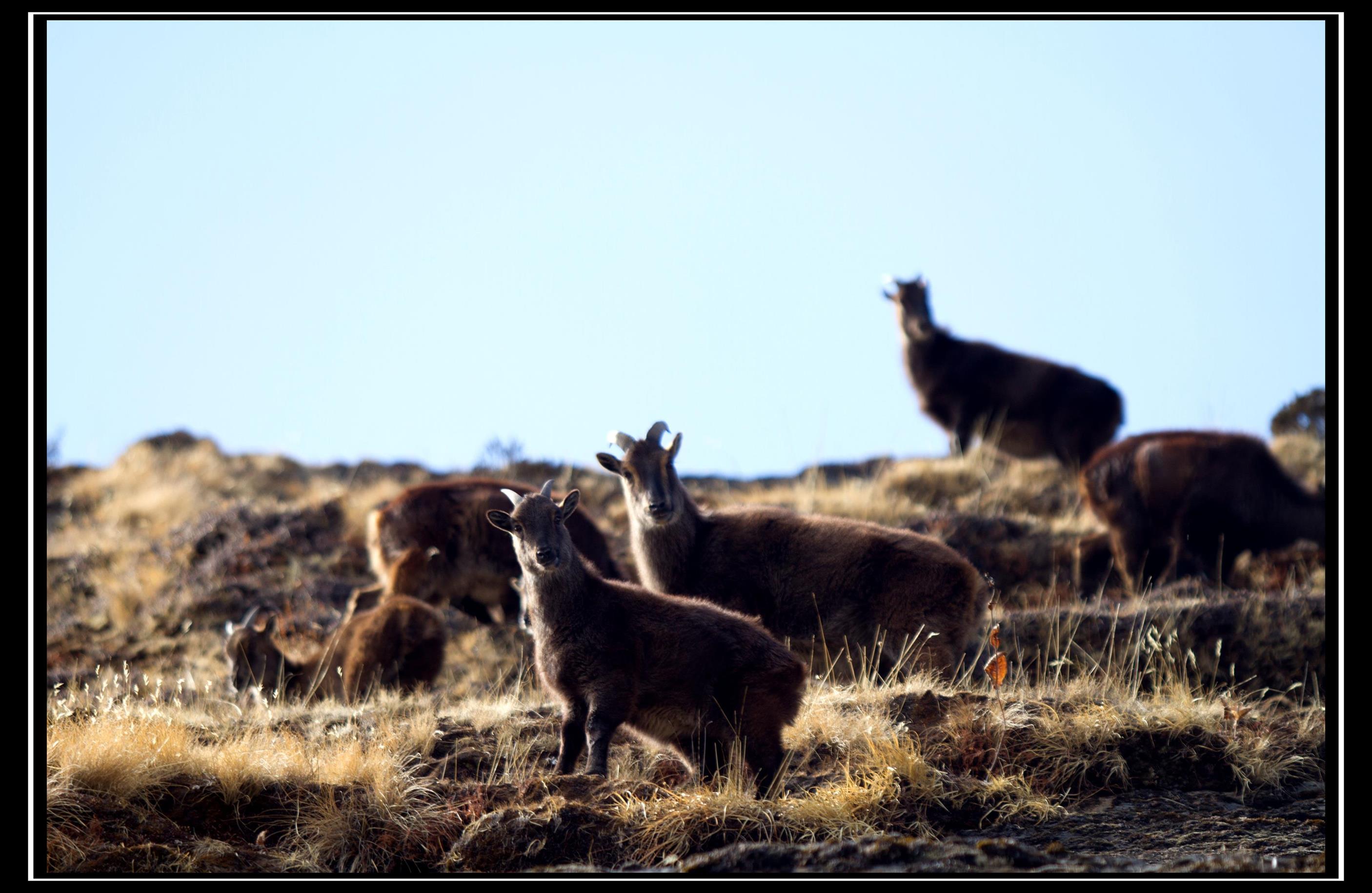 再接着往下走就是海拔四千米以上了。到了这个海拔,乔木林便消失了,能见到的绿色主要是低低矮矮的灌木从。