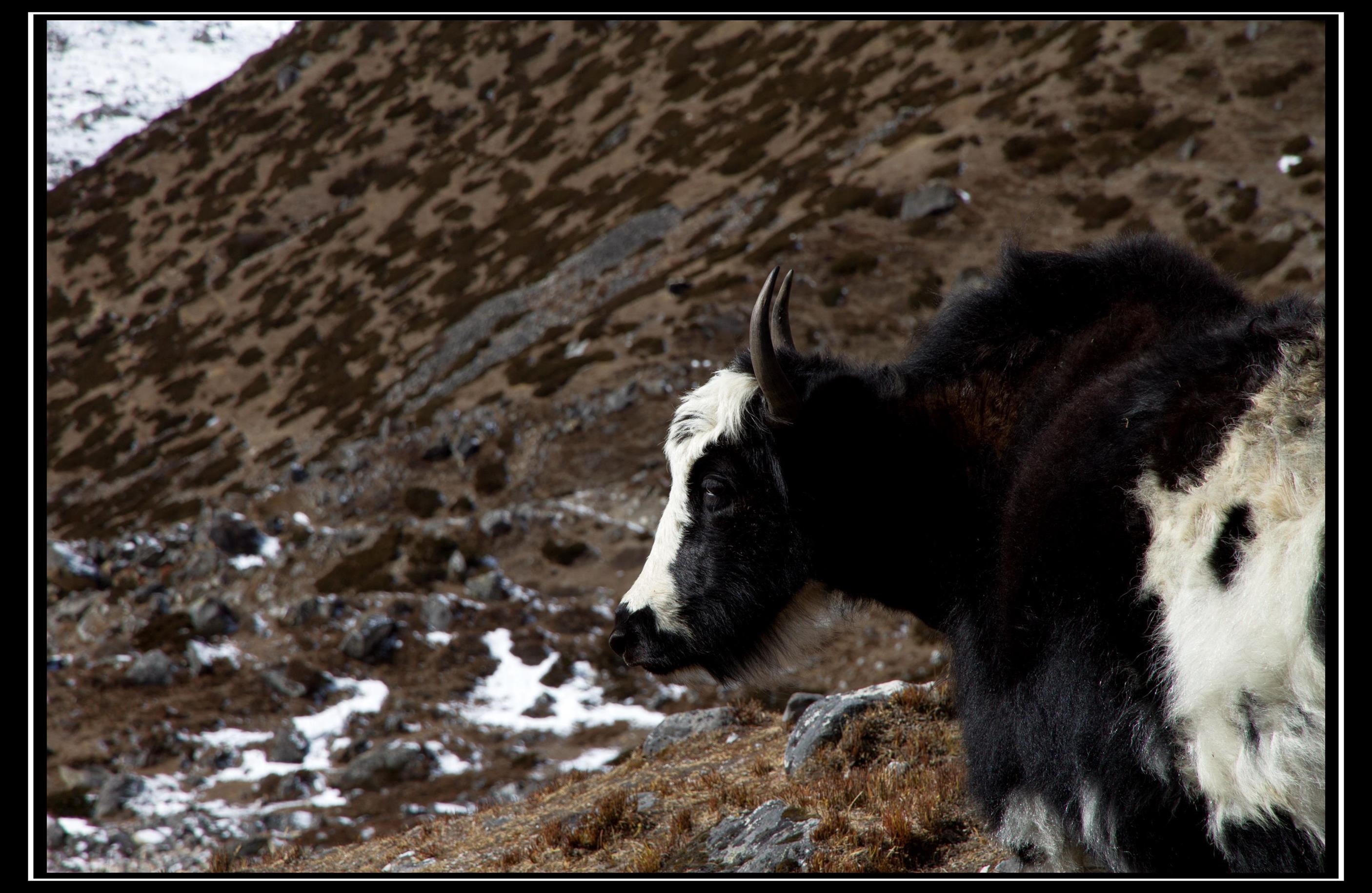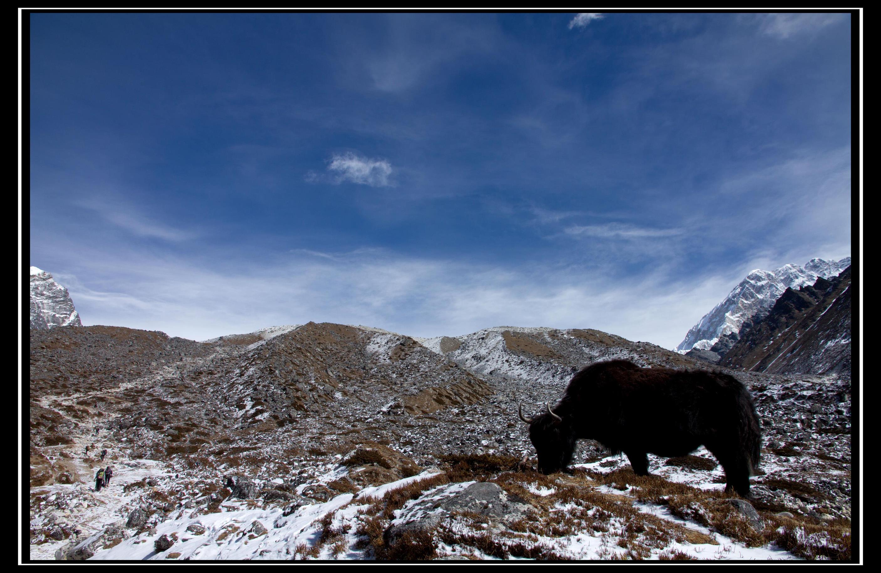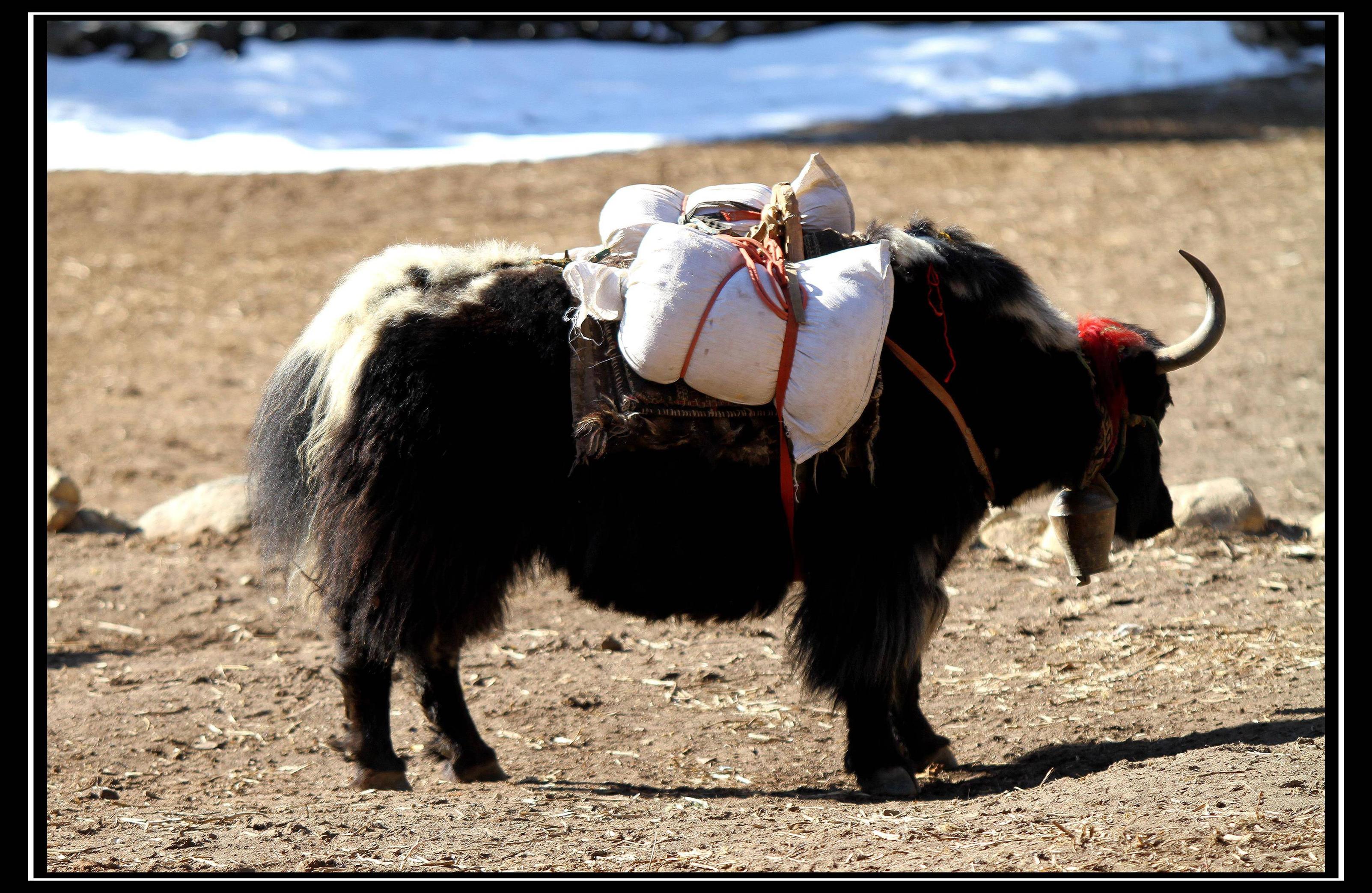背夫说,它们是迷路的牦牛,到了高海拔地区也会因为高反而死去。而在我看来,它们只是找回了自己原本的生活方式,它们本就该自由地在喜马拉雅的斜坡上悠闲地吃草散步打盹奔跑甚至斗架,而不是背上重重的行李加入叮当叮当招摇过市的牦牛运输队。