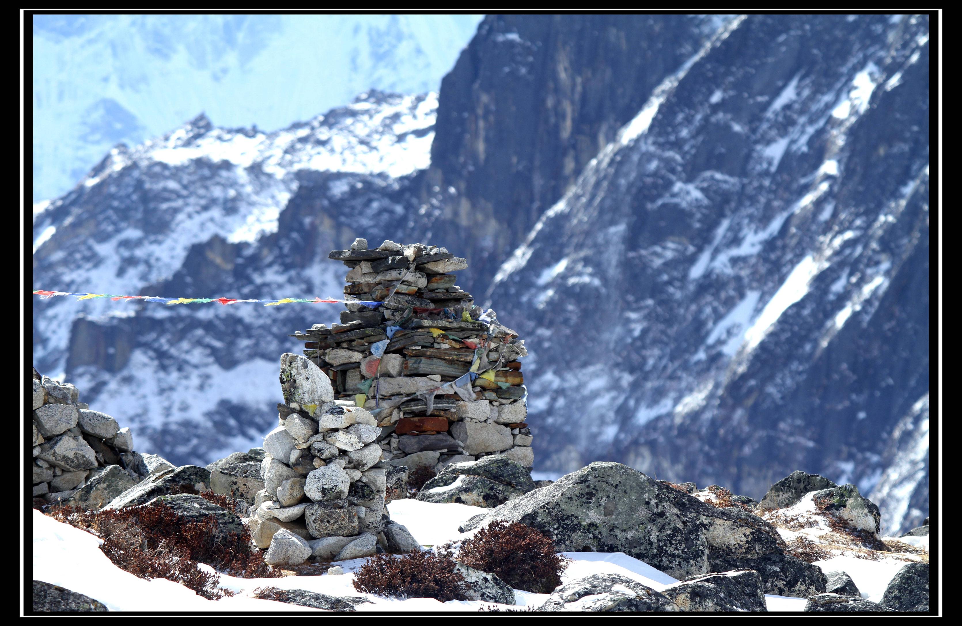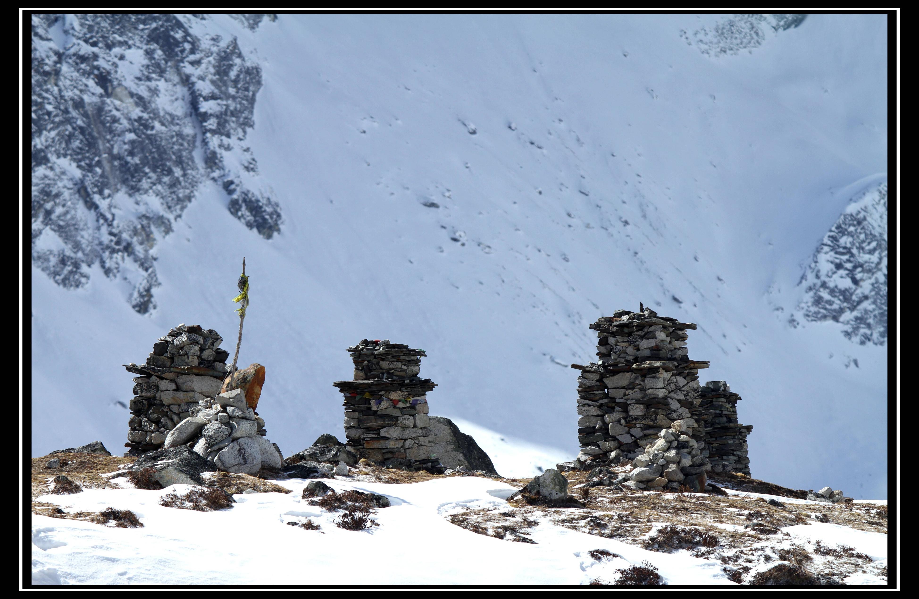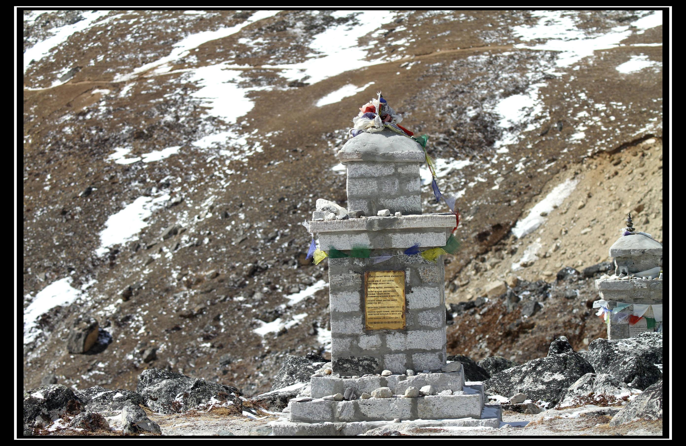 过了哑口,便是一爿墓碑林立的斜坡地。这些墓碑是为了纪念在徒步或者登山途中失去生命的各国勇士们。