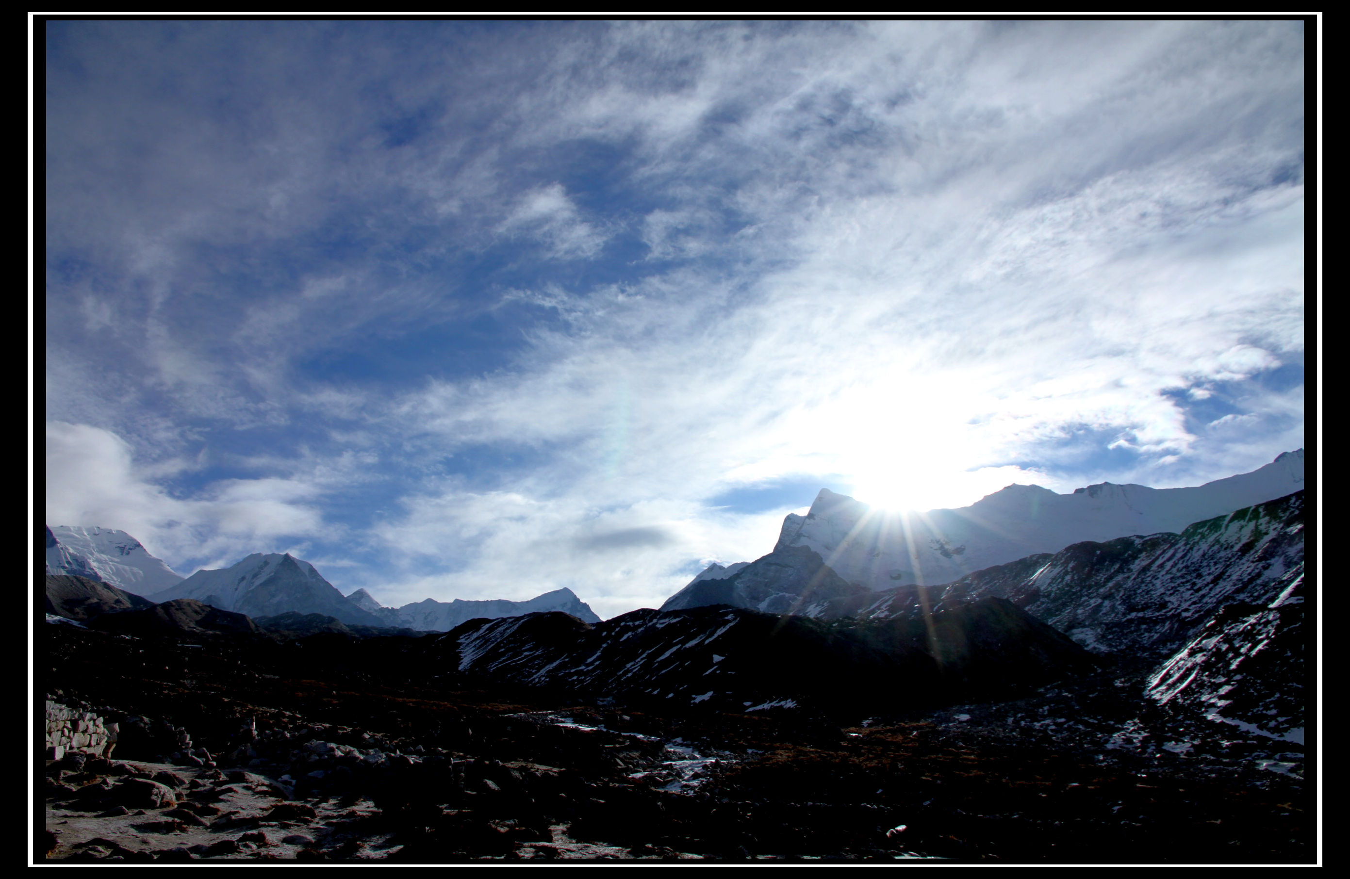 事实上我们行进的速度是如此之慢,太阳出来的时候我们还里Chukhung有至少半个小时的路程。